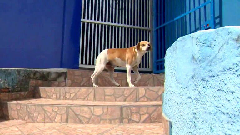 During Amiga’s labor inside Veterinária Campo Grande, a second stray dog approached the building. What a weird coincidence. Surely it wasn’t another pregnant pooch? João and his colleagues really would’ve had their hands full if that was the case. In reality, it was a male dog. So, what did he want? Photo credit: Notícias do Espírito Santo/YouTube