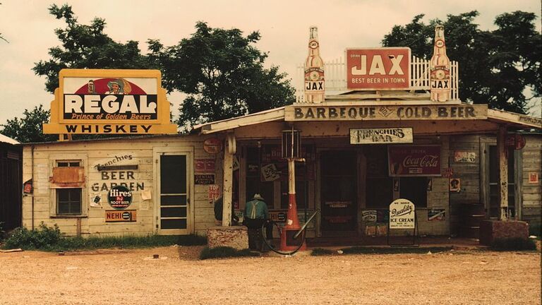 This colorful slice of life from Melrose, Louisiana was captured by Wolcott in the summer of 1940. Beers by Jacks and Regal are on offer at Frenchies Bar which also operates as a store selling and ice cream and soda and features a single gas pump. FSA snapper Post Wolcott soon became renowned for the documentary images she created during her four years with the agency. Photo Credit: Library of Congress