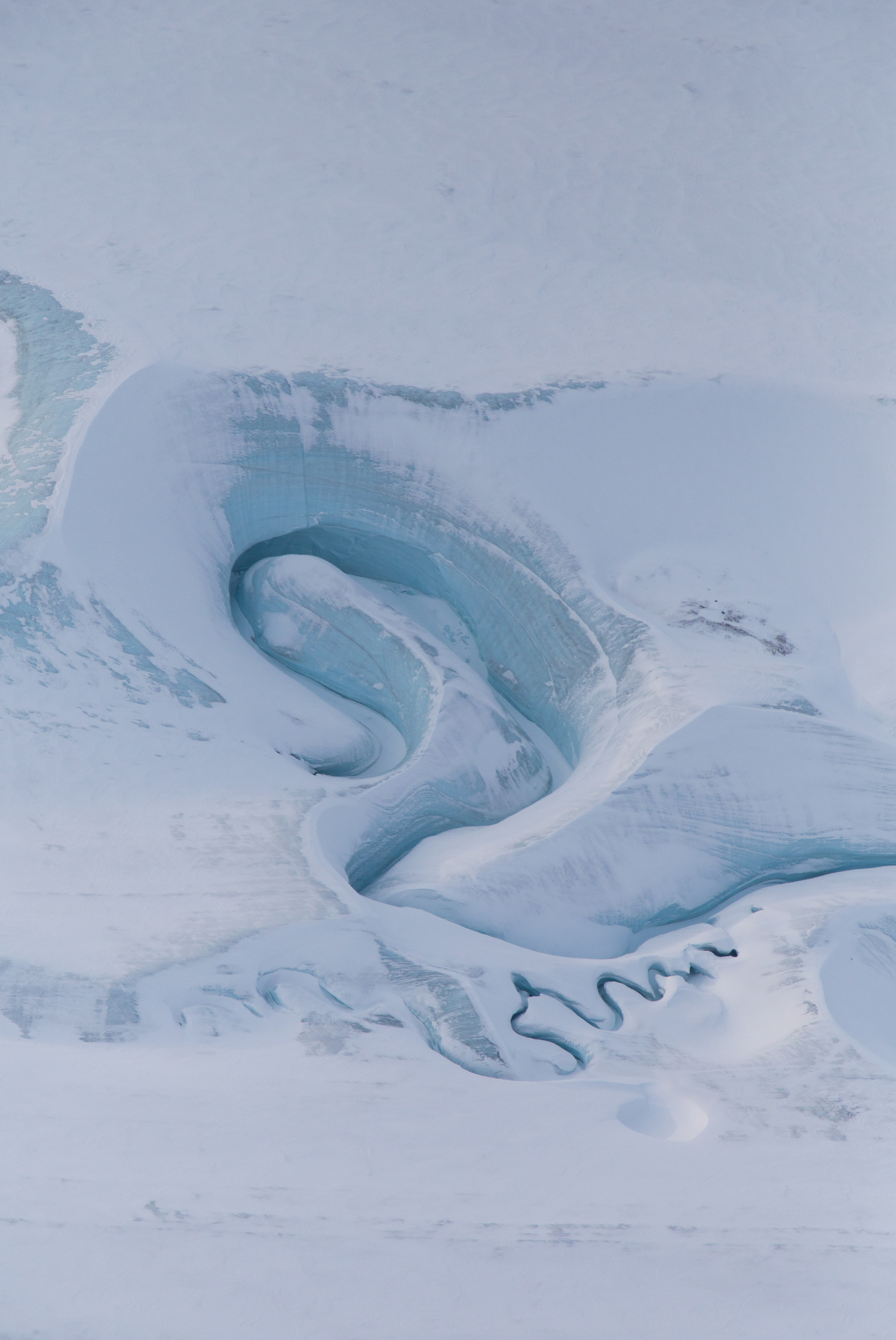This photo was captured by sea ice scientist Jeremy Harbeck of NASA’s Operation IceBridge, which is responsible for collecting important surveys of polar ice and snow. The image captures stunning meltwater channels on the DeVries Glacier. Ice caps like this one have been significantly shrinking in size as the climate continues to warm.