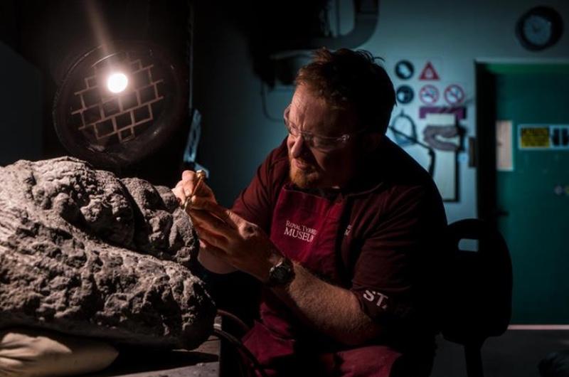 Scientists speculate that the unlucky dinosaur died and ended up being swept into the river by a big flood. It was kept afloat by gases in its body which washed its belly-up carcass far out to sea. After a week or so, the carcass burst and it sank back-first into the ocean floor. Minerals seeped into the skin and armor and supported its back which immortalized its form as tonnes of rock piled on top of it.