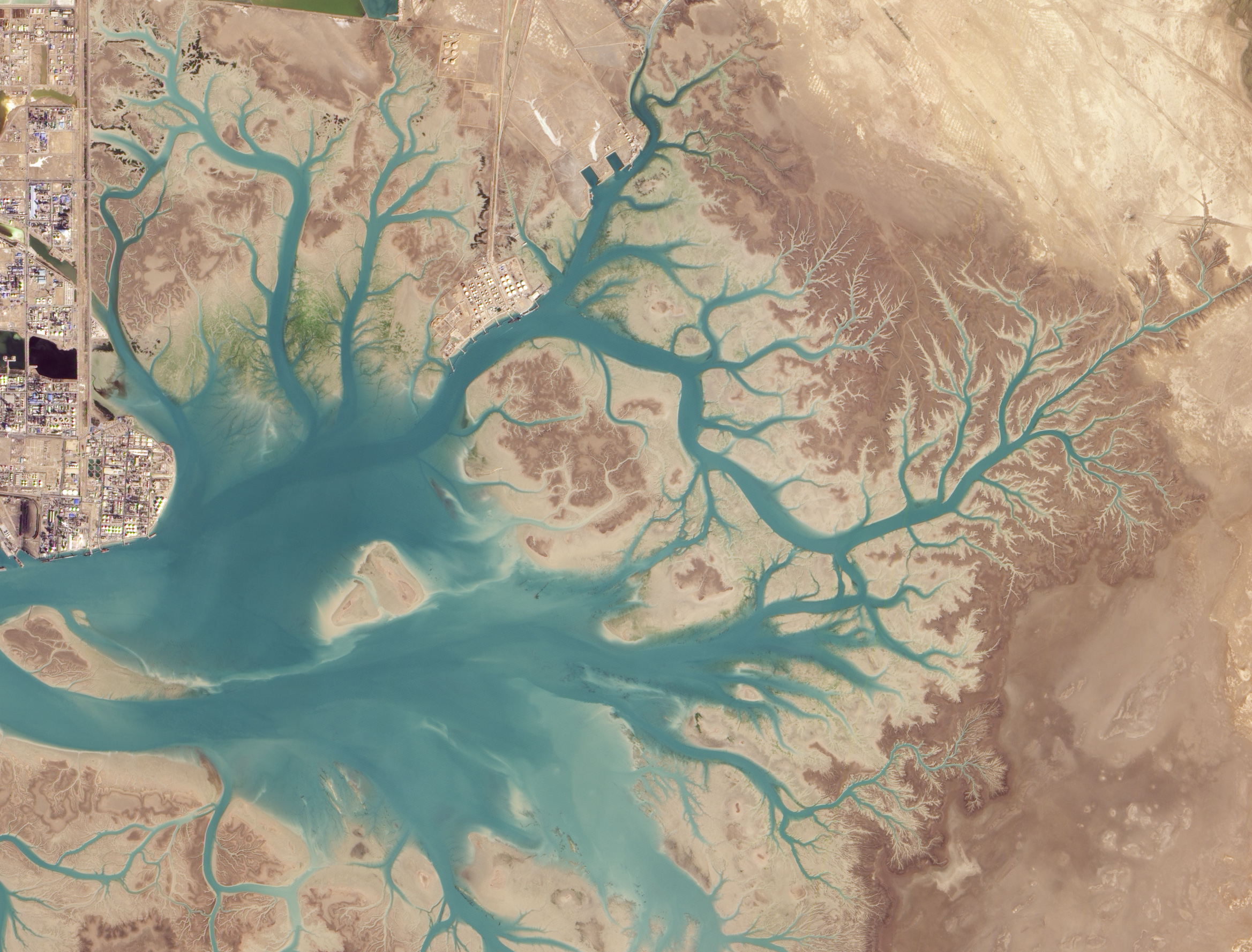 This image was captured by the Advanced Land Imager on board NASA’s EO-1 satellite and shows how various rivers throughout southern Iran converge here before emptying into the Persian Gulf. As a result, the area was a very early shipping center and remains one of Iran’s largest port cities.