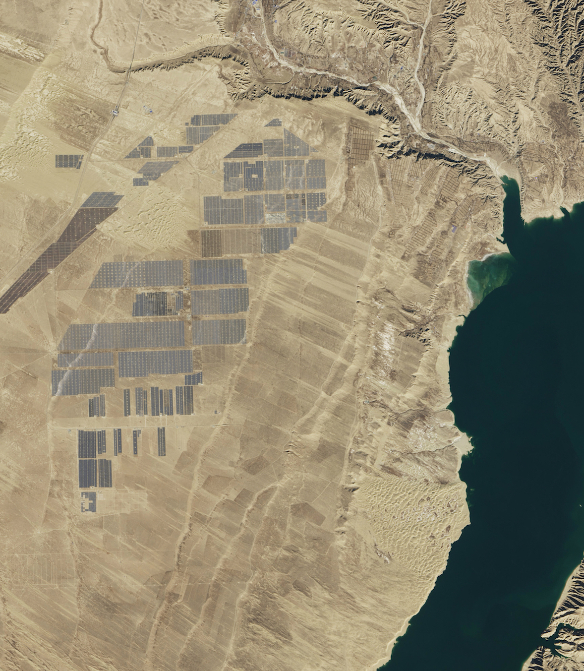 Today’s Image of the Day comes thanks to NASA’s Earth Observatory and features an overhead view of the largest solar farm in the world: Longyangxia Dam Solar Park in China. The photo was captured by NASA’s Operational Land Imager (OLI) onboard the Lansat 8 satellite.