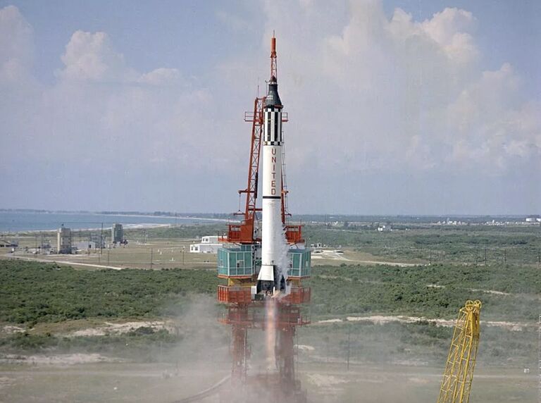 Freedom 7 managed to enter into space on May 5, 1961, but Shepard was unable to achieve orbit around Earth. However, he did fly 116 miles high before coming back down. The trip was nothing short of exhilarating for both the astronaut and the anxious engineers watching at NASA, but everyone was still well aware of the dangers space travel posed. Photo Credit: NASA / Wikimedia Commons | {{PD-USGov}}