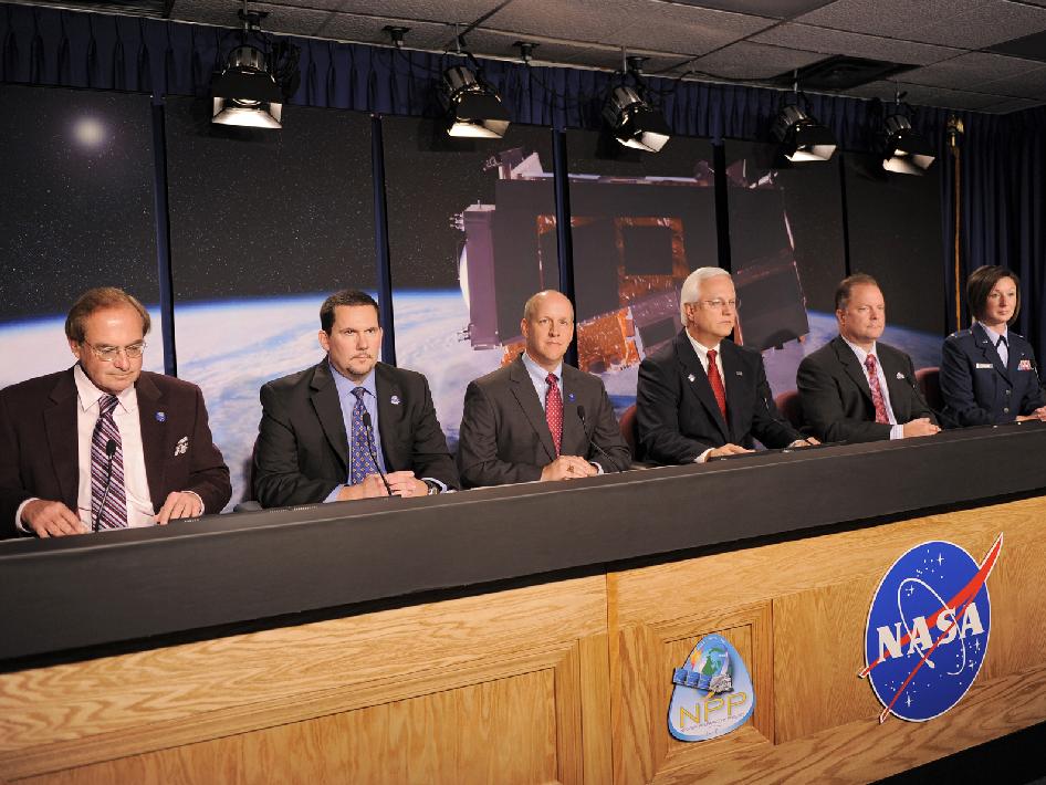 Participants in the NPP News Briefing prelaunch. Therefore the news conference for NASA’s National Polar-orbiting Operational Environmental Satellite System Preparatory Project. (NPP) Although spacecraft prepare to address members of the news media gathered at Vandenberg Air Force Base, Calif.