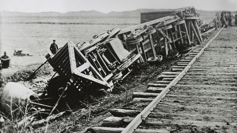 What caused this locomotive and its carriages to part company with the rails is unknown, but it was clearly a drastic incident. The photograph is from the Civil War, but we’re not told if it’s a Union or Confederate train. The location is certainly in the South, at Manassas, Virginia. Official United States Military Railroad Construction Corps snapper Russell, whose work we have already encountered previously in this collection, was again the photographer here. Photo Credit: Universal History Archive/Universal Images Group via Getty Images