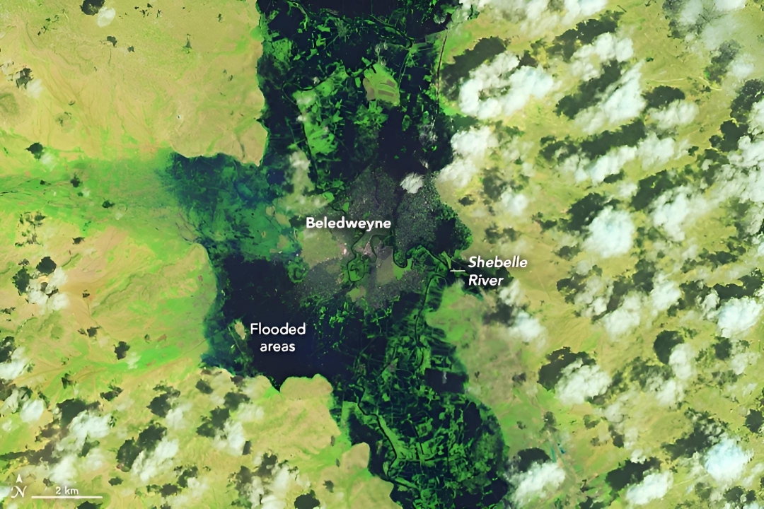 “Excessive rainfall in the highlands of Ethiopia and Somalia in late October and early November raised the levels of the Shebelle River until it filled on November 11,” said NASA.