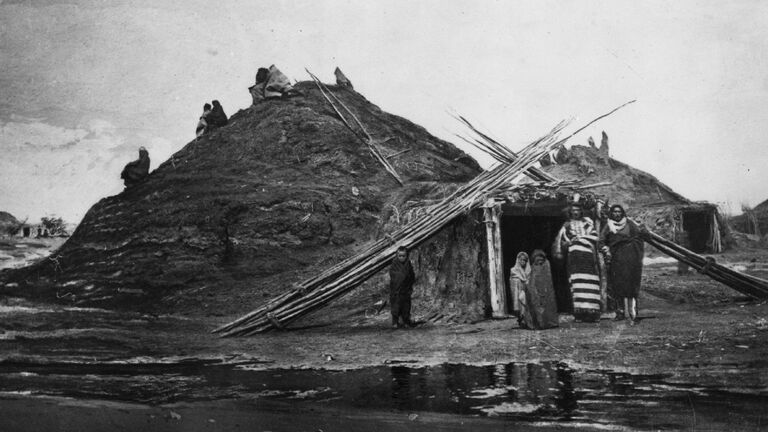 Standing in front of their lodge in Loup, Nebraska, this family are from the Pawnee people. The Pawnee tribe lived around Nebraska’s Platte River – often in earthen lodges, though they moved to teepees while hunting buffalo. Nowadays, however, you’re more likely to find these indigenous people further north in the Pawnee Nation of Oklahoma. Another 3,000 Pawnee Native Americans are scattered about the wider continent. Photo Credit: William Henry Jackson/Getty Images