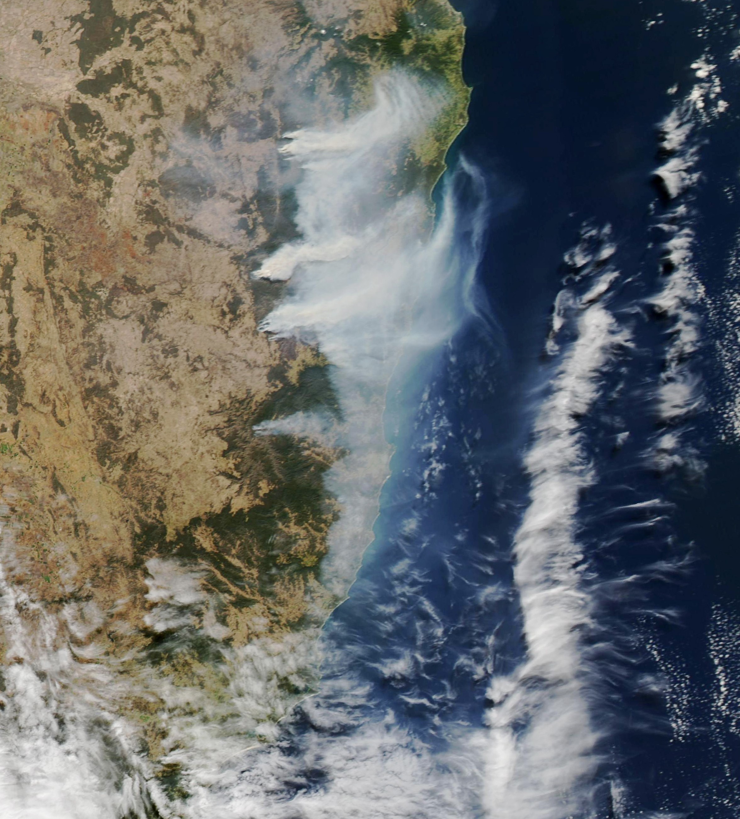 Persistent drought fuels fires in Australia Today’s Image of the Day from NASA Earth Observatory shows wildfire smoke blowing in westerly winds over New South Wales.