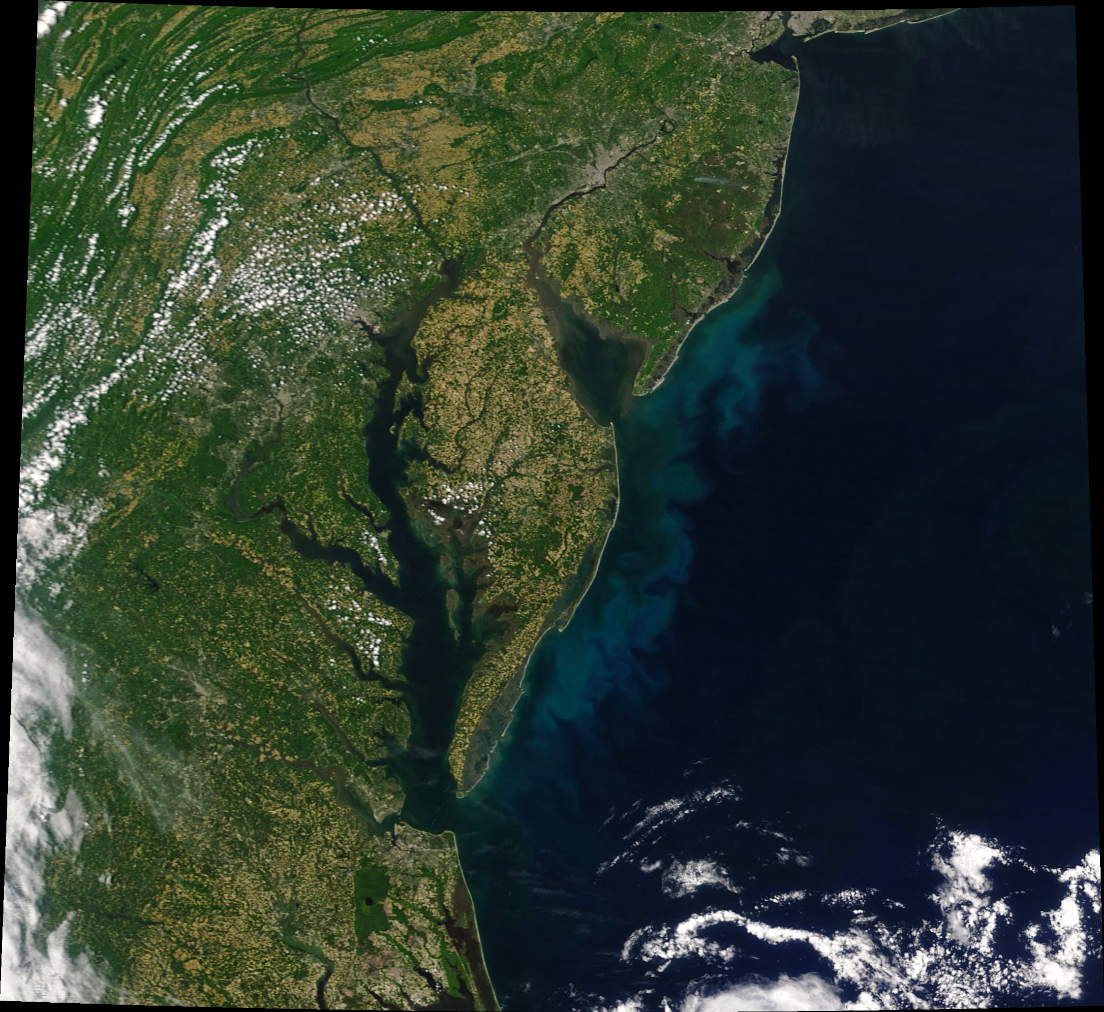 According to NASA, some of the nutrients that fueled the bloom in this image likely came from runoff in the Delaware River watershed. The National Aeronautics and Space Administration is an independent agency of the U.S. federal government responsible for the civilian space program, as well as aeronautics and space research.