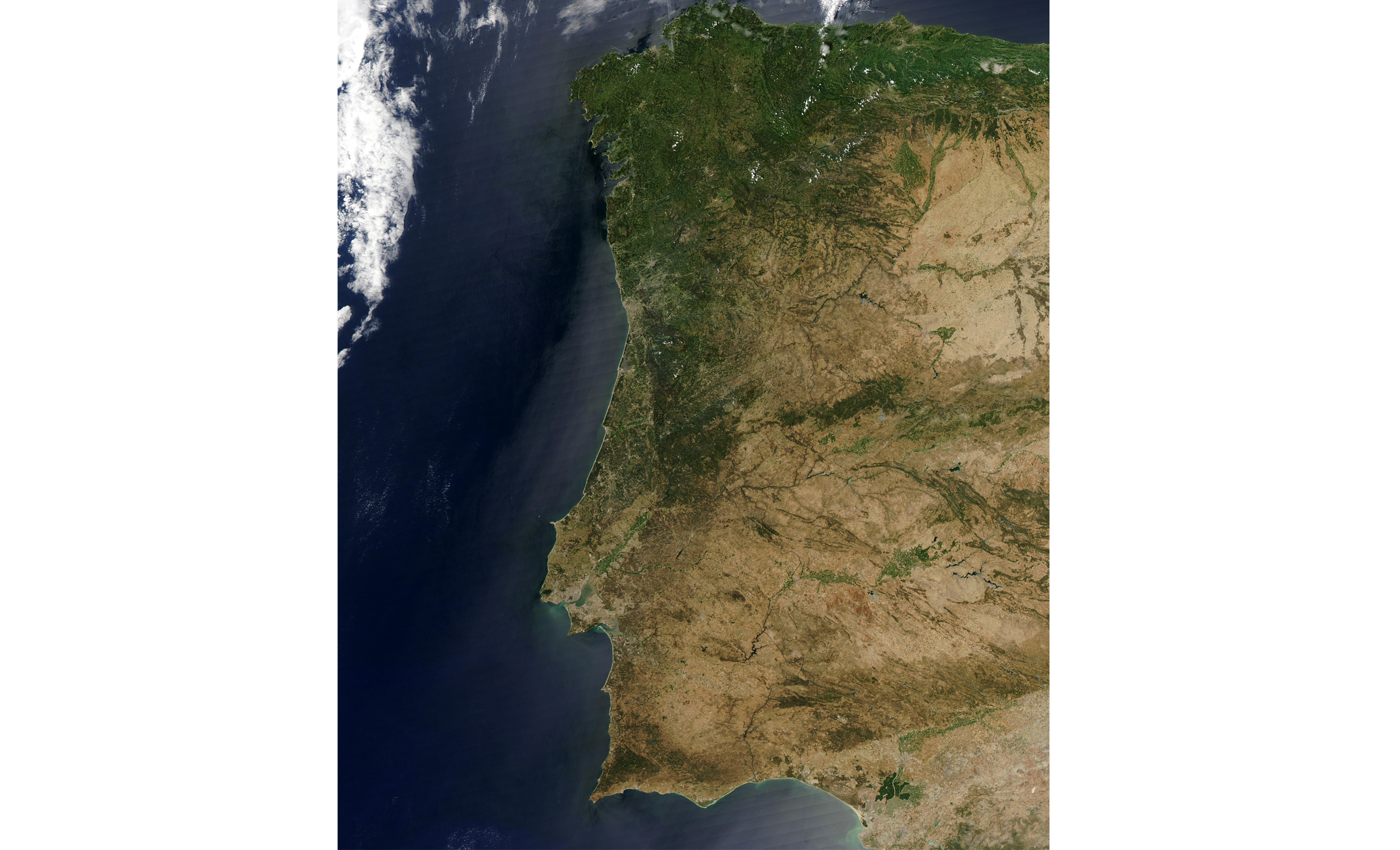 Hot and dry conditions over the Iberian Peninsula produced dozens of forest fires in Portugal (left of center) and southern Spain (right) in August 2003. Hundreds of firefighters worked for several weeks to control large forest fires in central and southern Portugal. Media reports indicate that about 70,000 residents in nearby communities were without power or phone during the fires, and 15 people lsot their lives. These images of the fires (marked in red), were captured by the Moderate Resolution Imaging Spectroradiometer (MODIS) on the Terra and Aqua satellites in July and August 2003.
