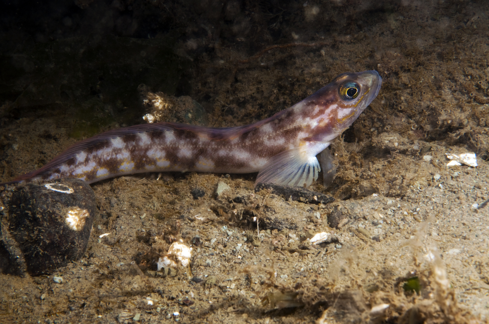 Ranging from southern Oregon down to the northern reaches of the Mexican state of Baja California, monkeyface pricklebacks are coastal fish that live in rocky, tidal areas close to shore. First described by Girard in 1854, the fish spawn on the sea floor and show some nest guarding behavior. While young monkeyface pricklebacks feed on zooplankton and crustaceans, adults are primarily herbivorous, feeding on red and green algae.