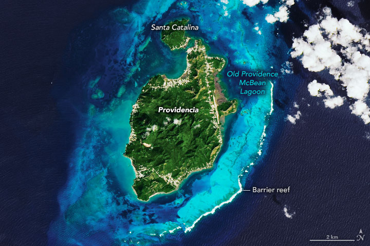 “Providencia was once an island sanctuary for pilgrims and privateers. Today, it is mostly a refuge of quieter Caribbean life amid raw natural beauty,” reports NASA.
