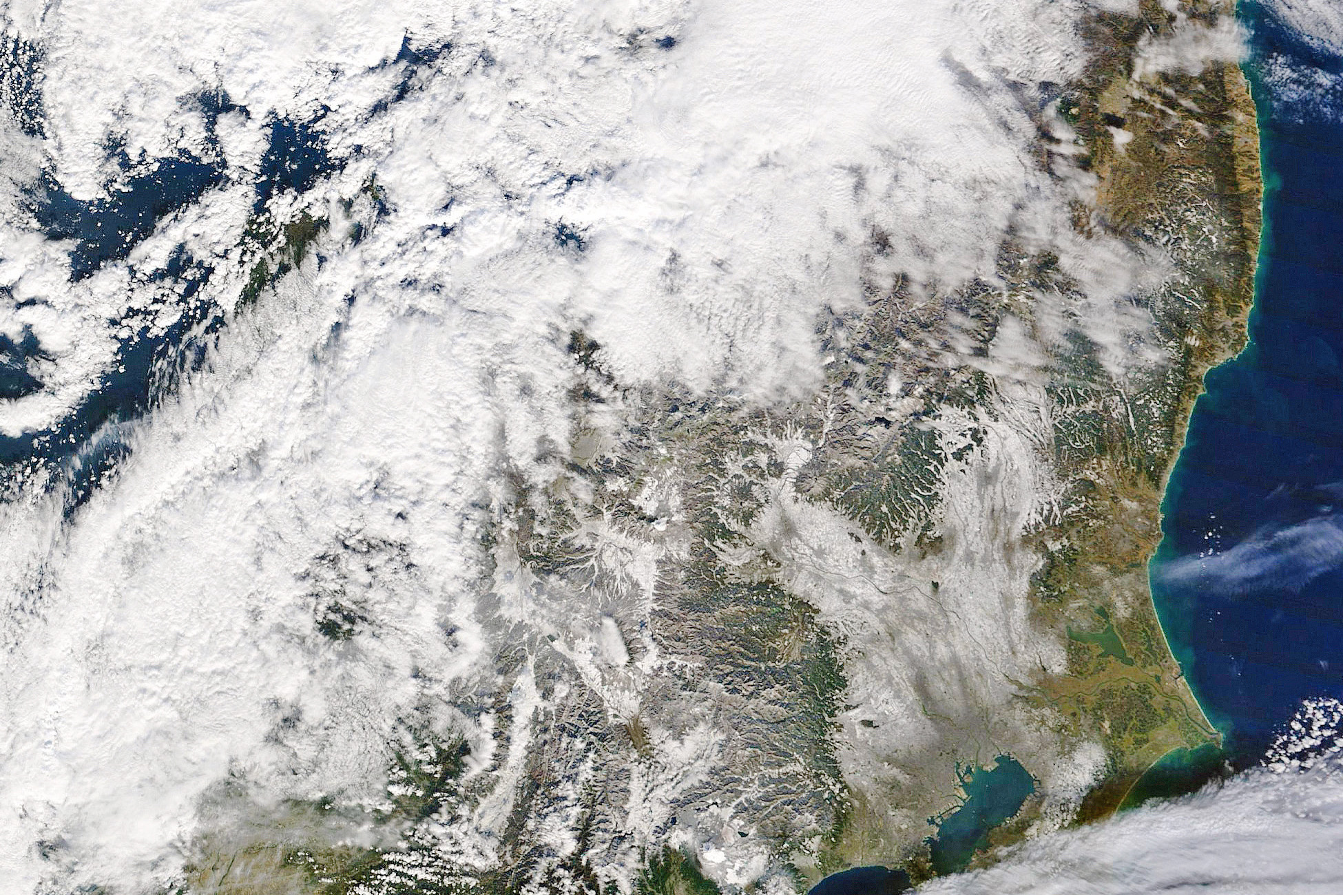 On November 24, 2016, Tokyo received its first November snowfall in more than half a century. The Moderate Resolution Imaging Spectroradiometer (MODIS) on NASA’s Terra satellite captured this natural-color image the same day. The snow in Tokyo fell in and around the Japanese capital, coating the metropolitan area and accumulating along some sidewalks.