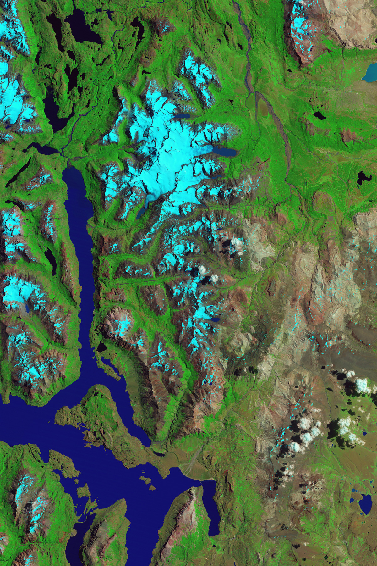 Pelto decided to look at glaciers in Argentina “primarily because there is less information on them.” First he considered the areas most likely to show visual change, which often occurs in the vicinity of lakes; glaciers that terminate in water lose ice not only from their surface, but also through calving. By comparing imagery from Landsat satellites, he found that the glaciers of Sierra de Sangra are retreating.