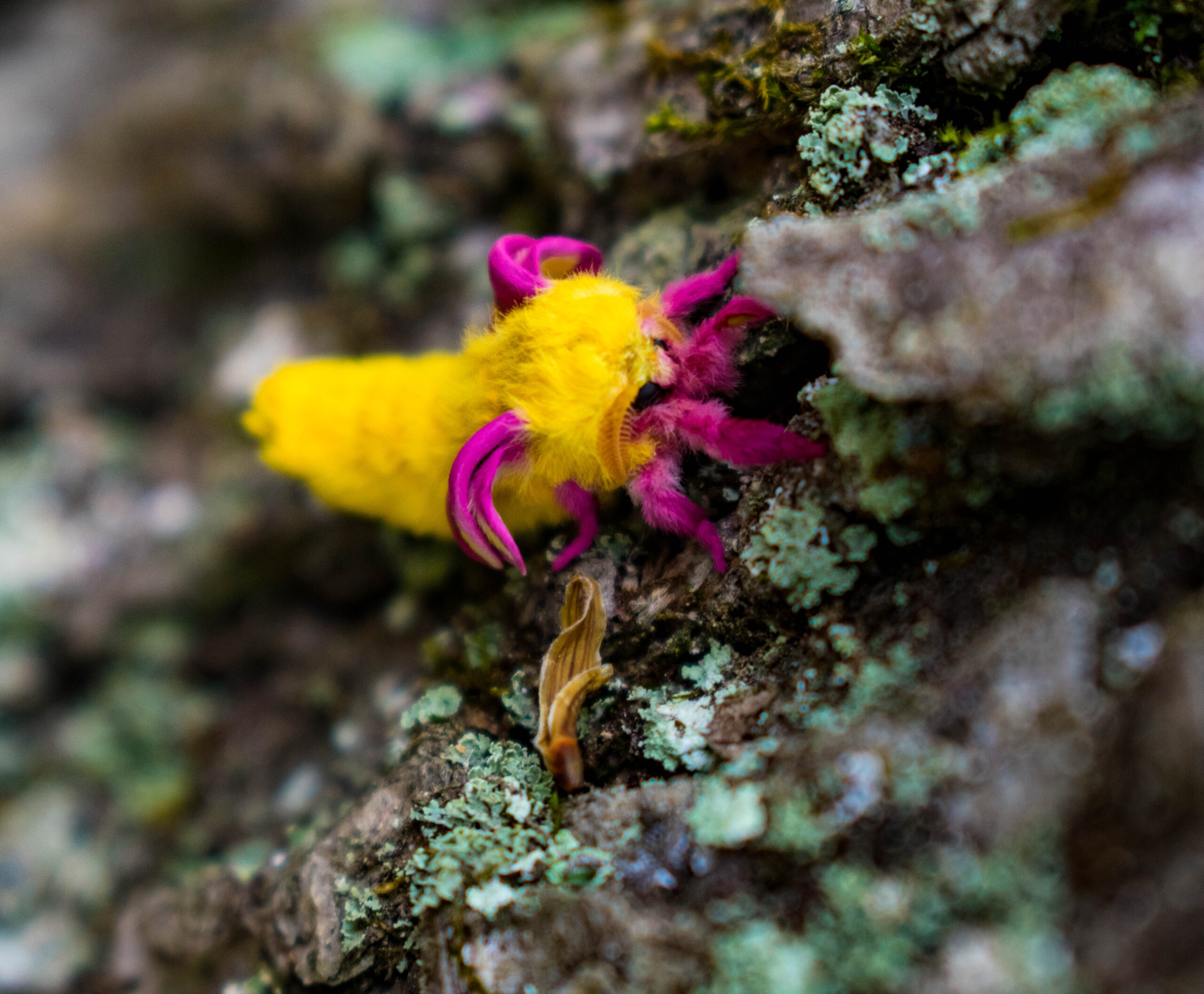 The rosy maple moth, is a small North American moth in the family Saturniidae, also known as the great silk moths. The species is known for its wooly body and pink and yellow coloration, which varies from cream or white to bright pink or yellow.