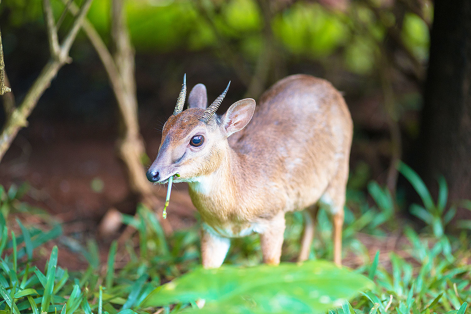 Royal antelopes, also known as Neotragus pygmaeus, is a West African antelope. It is recognized as the world’s smallest antelope. The royal antelope has a shoulder height is 25 centimeters (10 inches) and it weighs 2.5–3 kilograms (5.5–6.6 lbs). The head and body length is typically 40 centimeters (16 in).
