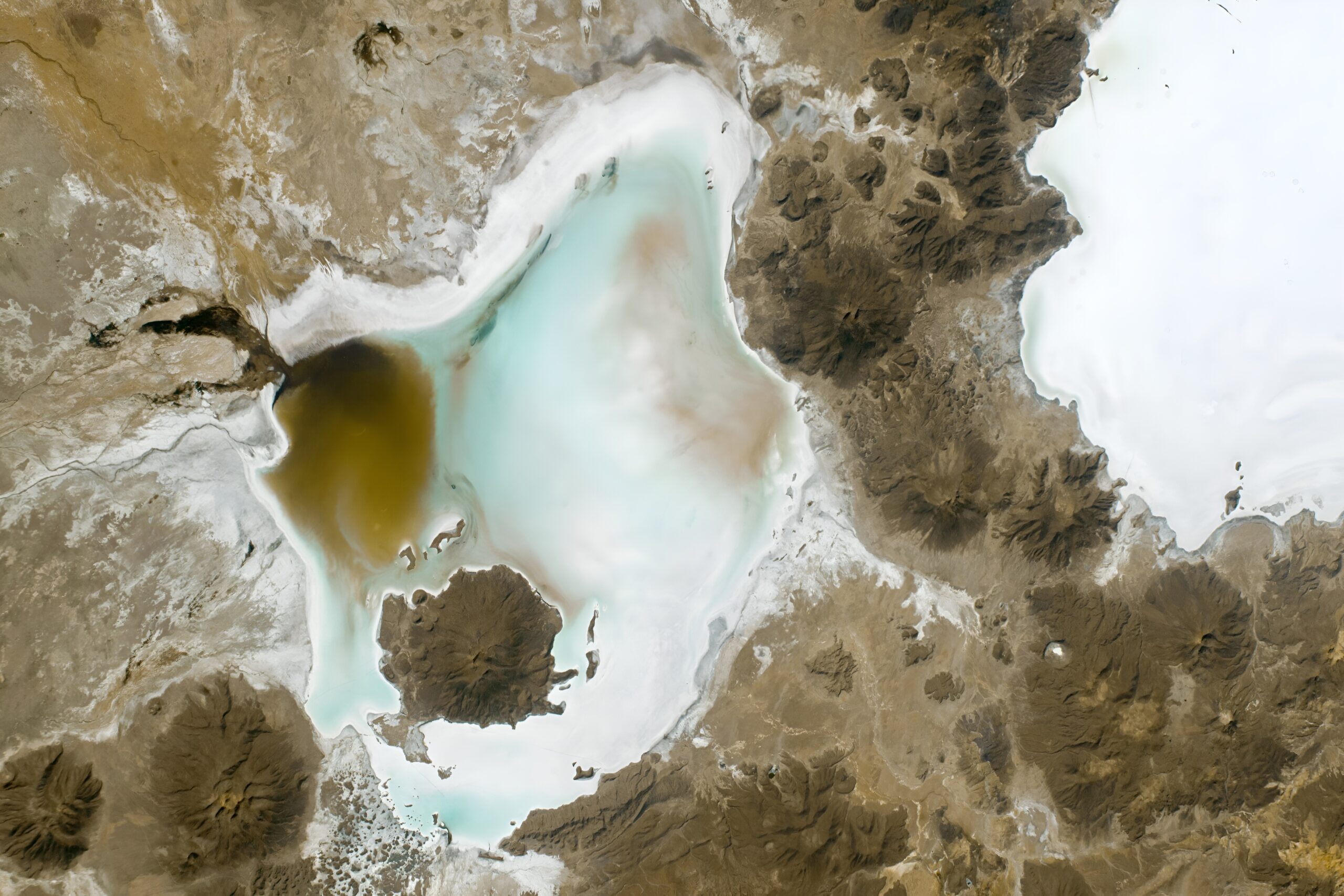 Today’s Image of the Day from NASA Earth Observatory features salt flats in the Bolivian Andes, Salar de Coipasa and Salar de Uyuni. The photograph was captured by an astronaut aboard the International Space Station.