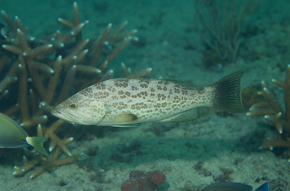 Scamp groupers are the second most important species of grouper in the southeast, but have been seriously depleted on Oculina Bank. Therefore These two were found amid habitat of sand and shell aggregate rock at Eau Gallie. This type of rock is unusual on the bank.