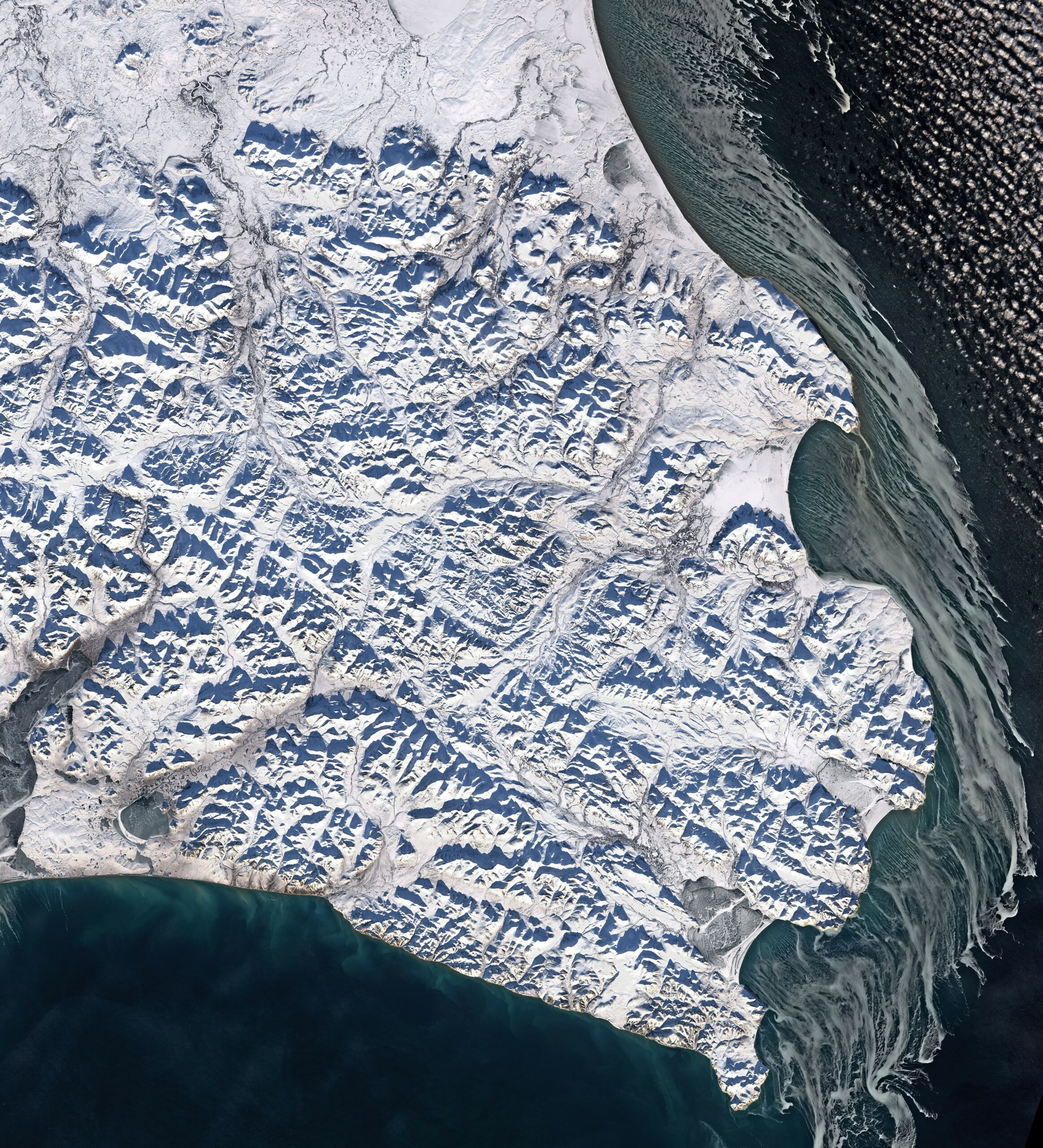 Today’s Image of the Day from NASA Earth Observatory features sea ice off Cape Navarin in northeast Siberia. The cape forms the southern boundary of the Gulf of Anadyr in the western Bering Sea.