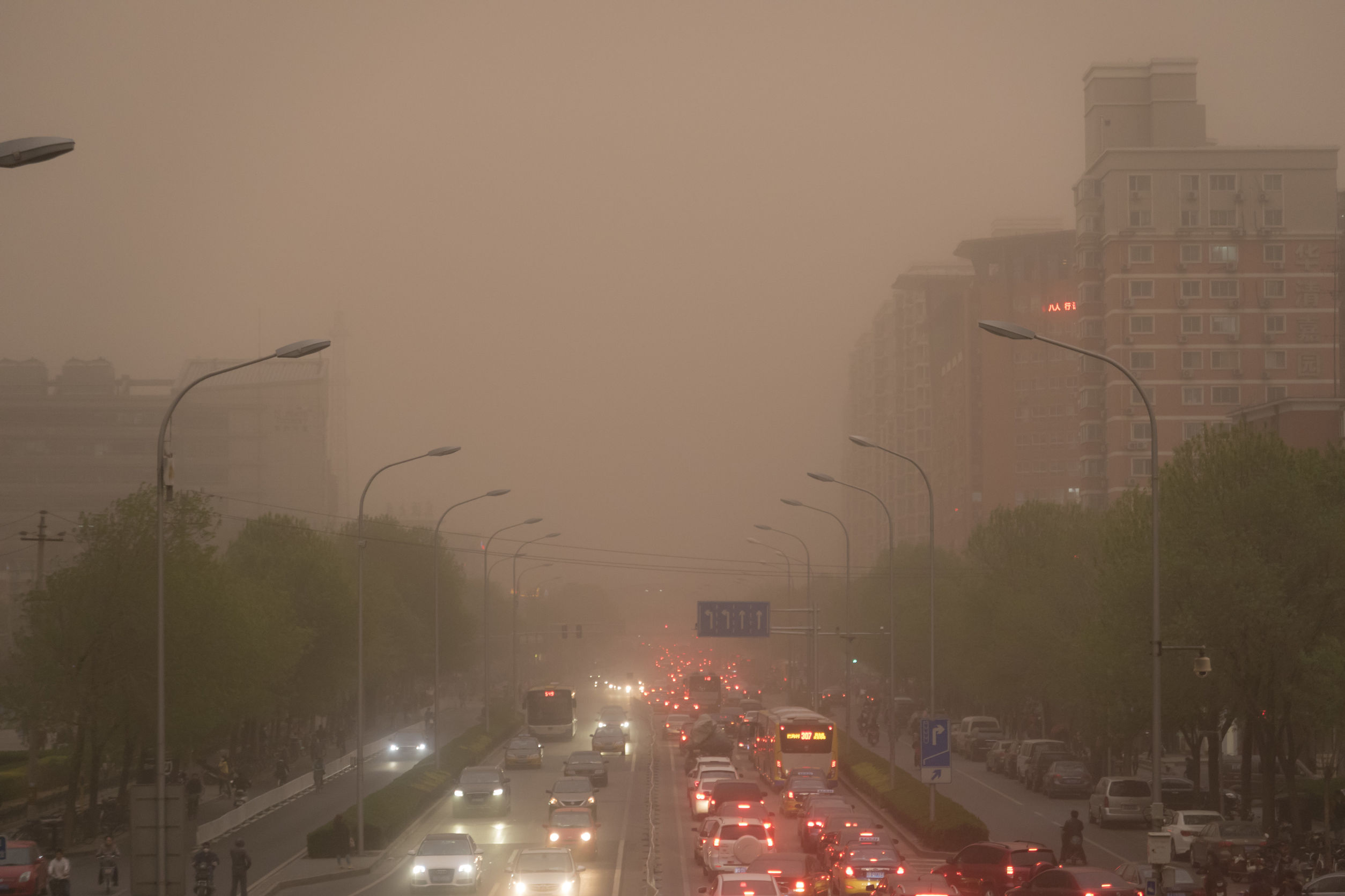 Thick Smog and Sand Over Beijing. This eastern China’s famed sandstorms clouded the air over Beijing on April 17, 2006. Although the storm swept east from the border region between China and Mongolia and blanketed cities across China with gritty yellow sand. The storm was the eighth and worst such storm of 2006, reported the BBC.