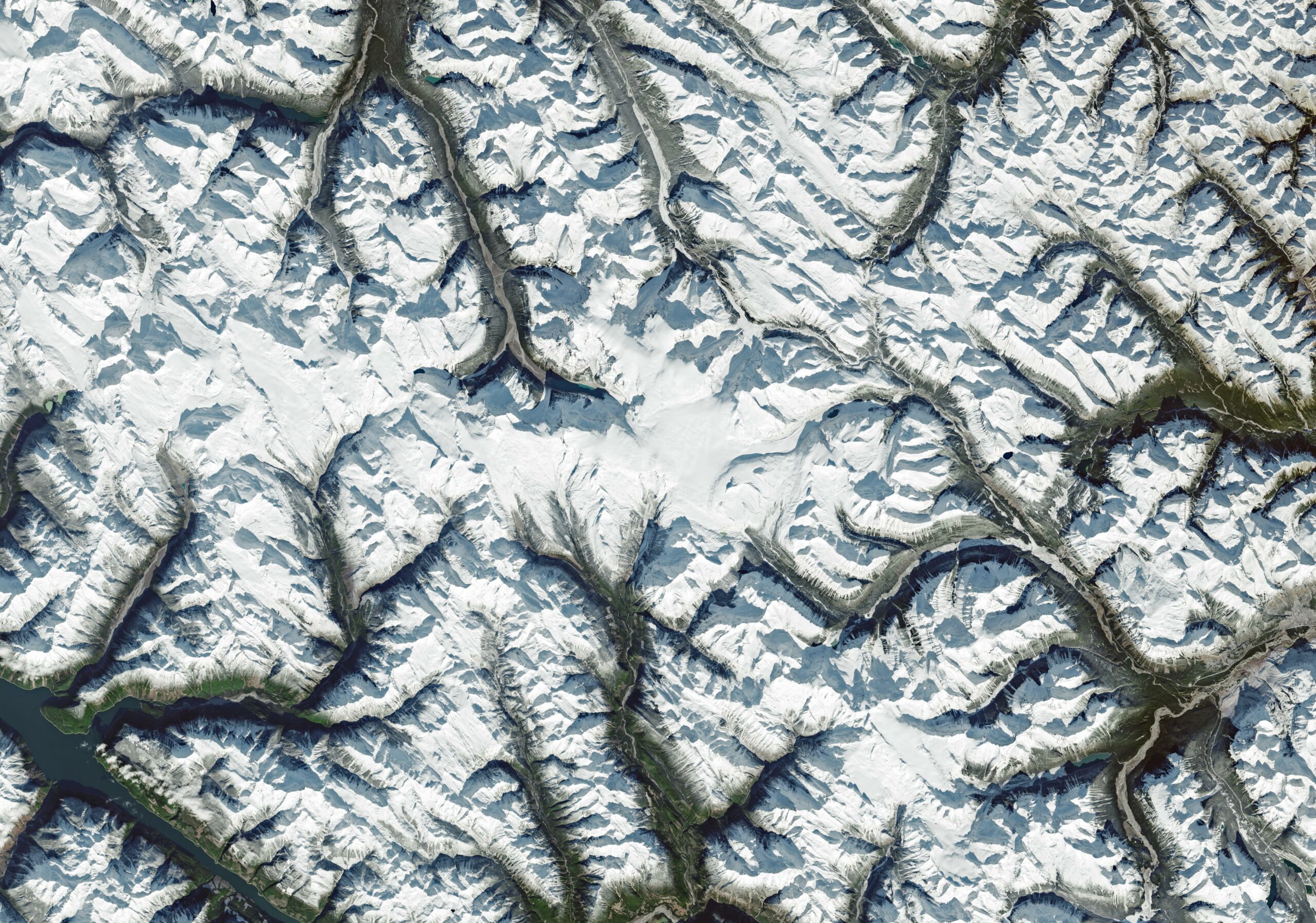 According to NASA, some of the highest mountain peaks stay white year-round. These mountains are capped with snow and glacial ice that survive summertime melting.