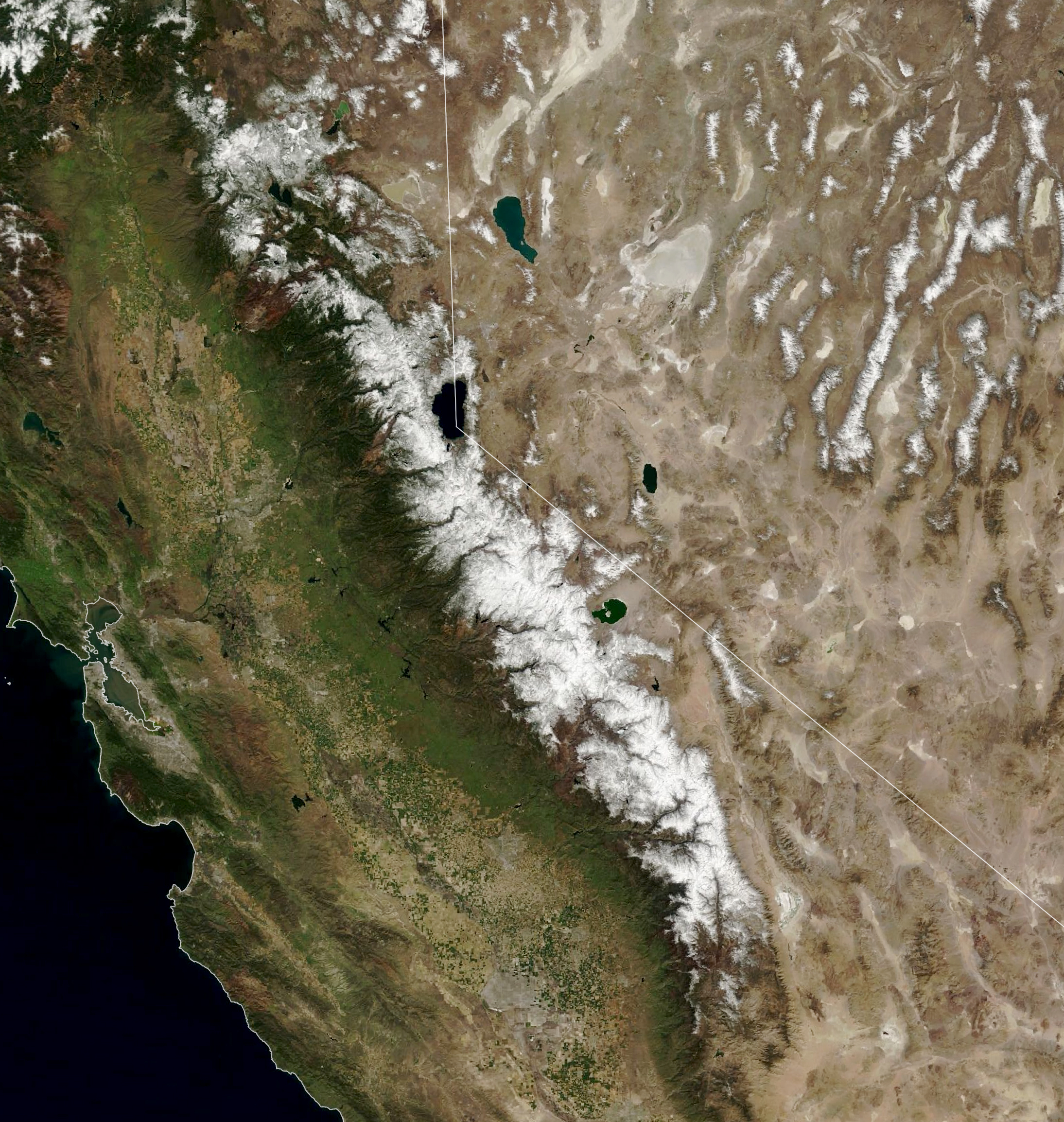 Snowfall is lacking in the Sierra Nevada mountains Today’s Image of the Day from NASA Earth Observatory features the Sierra Nevada mountain range in the western United States.