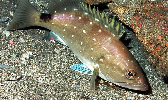 Deepwater reef communities form important feeding and spawning habitat for large predators such as snowy grouper.