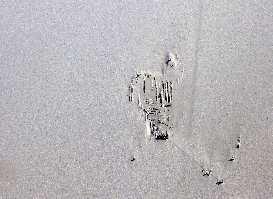 On Nov. 4, 2010, the DC-8 flew over South Pole Station, a research station at Earth’s geographic South Pole, before heading back to IceBridge’s mission base in Punta Arenas, Chile. Credit: Digital Mapping System (DMS) group.