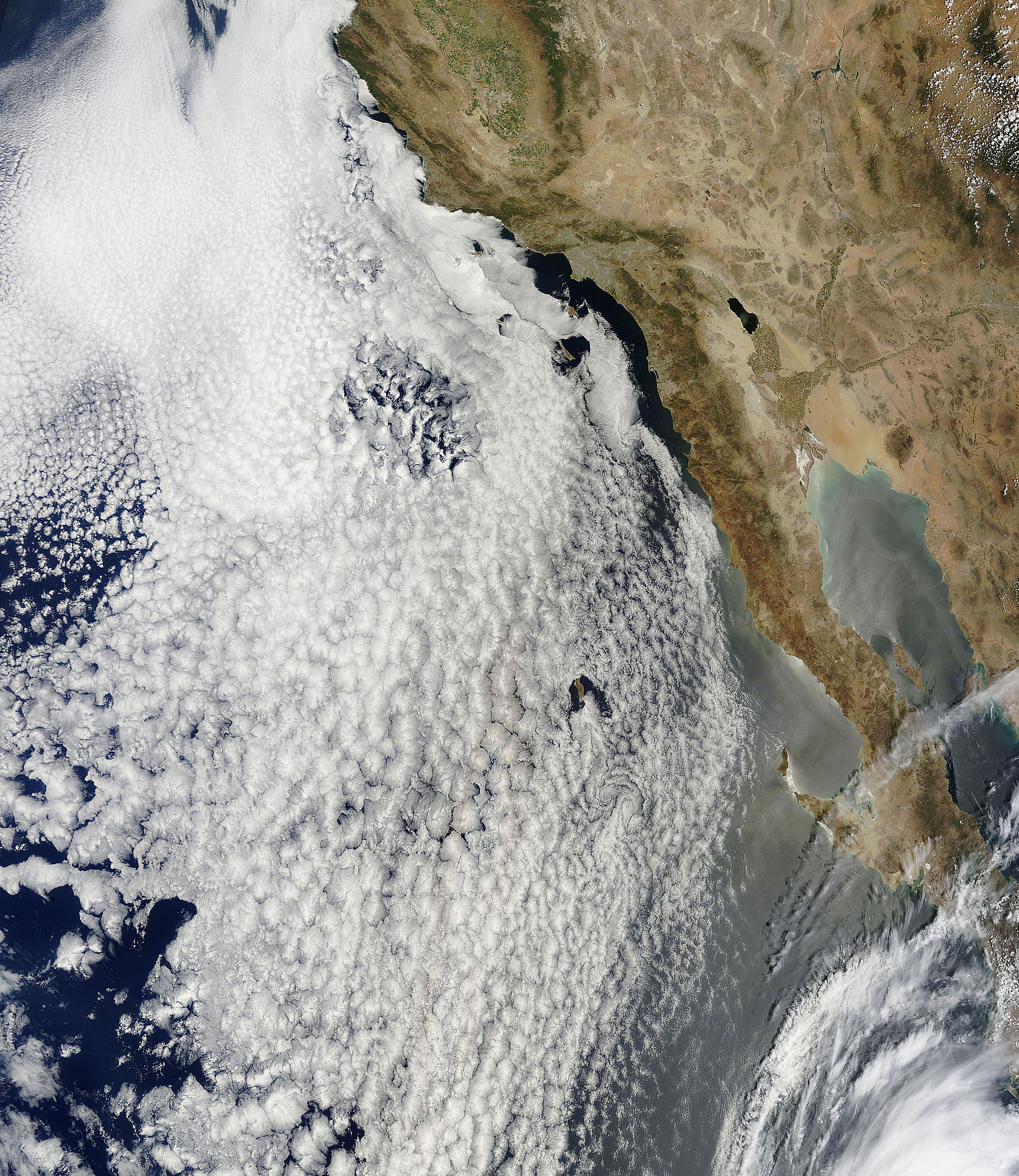 Southern California And Mexico Despite large banks of moisture-filled marine stratocumulus clouds hovering just off-shore, the landscape of southern California and Mexico was a portrait in various shades of tan, indicating arid land with little vegetation in mid-July, 2015.