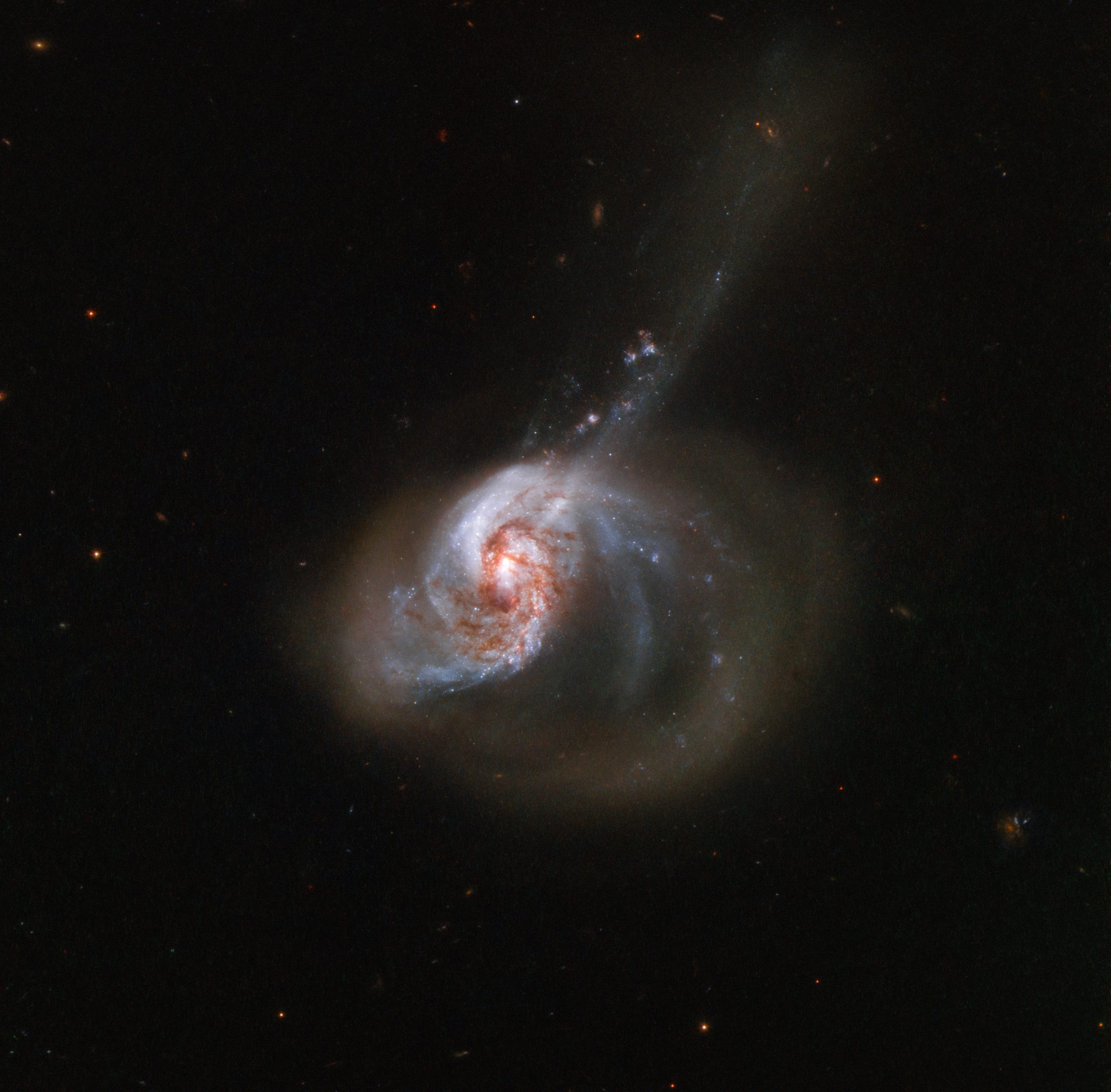 The impact of this galactic merger triggered a turbulent flow of interstellar gas from the smaller of the two galaxies into the nucleus of the larger one. According to the ESA, this activity led to a burst of star formation which started in the core and slowly spread outwards through the galaxy. Starburst galaxy NGC 1614 is one of our most luminous neighbors