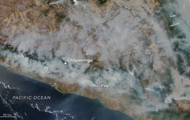 Strong winds fuel forest fires in Mexico Today’s Image of the Day from NASA Earth Observatory shows where fires have burned for nearly a week in the coastal state of Guerrero, Mexico.