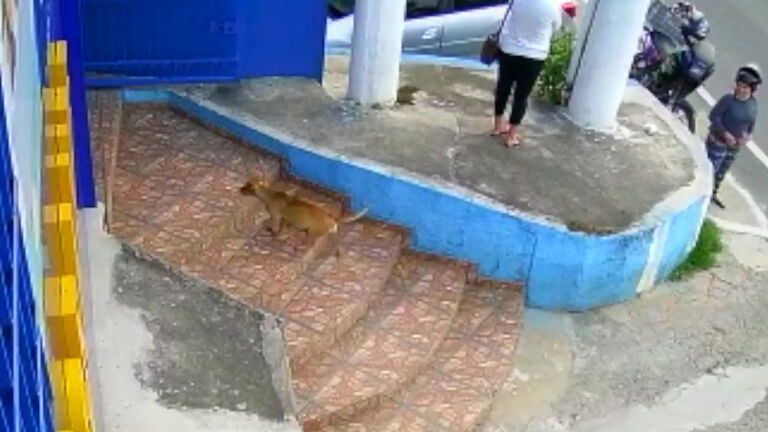 And that’s where the beautiful dog remained for the next half-an-hour or so. She showed no signs of moving. Talk about marking your territory! But as the minutes continued to pass, someone from inside the facility finally decided to investigate. Wouldn’t you be curious? The person in question was João Áureo Rodrigues de Oliveira. Photo credit: Meu Pet Feliz e Saudável/Facebook