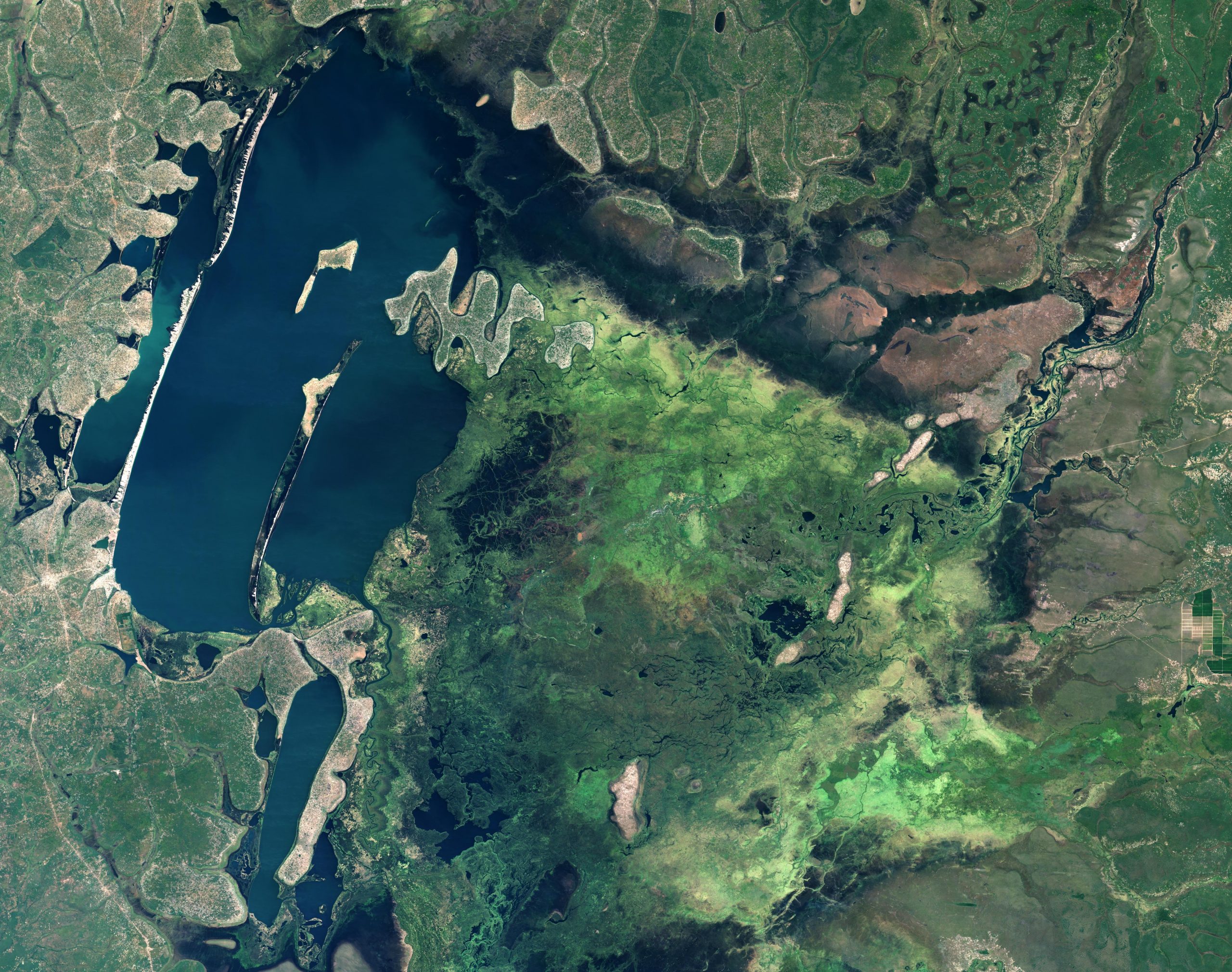 The wetlands consist of rivers, a shallow lake, flooded grasslands and swamps spread out across a flat area about the size of Connecticut, according to NASA.