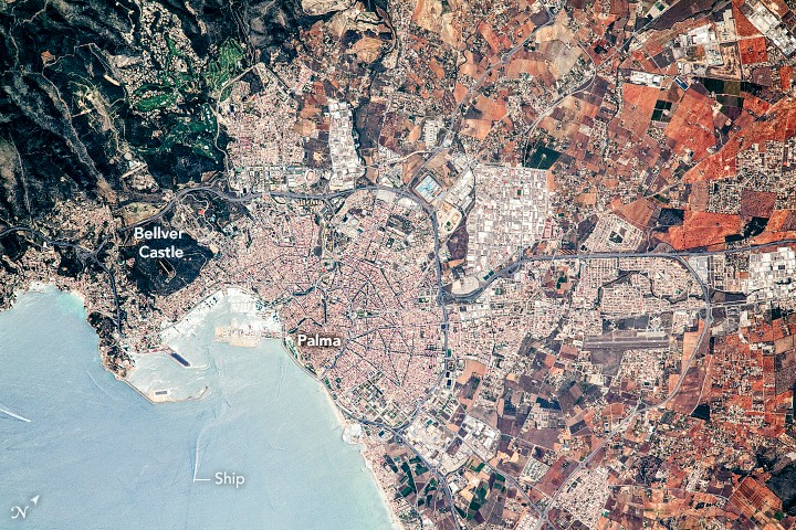 Today’s Image of the Day from NASA Earth Observatory features the city and port of Palma, the capital city of the Balearic Islands off eastern Spain. Palma is situated on the largest island of Mallorca, east of the Iberian Peninsula in the Mediterranean Sea.