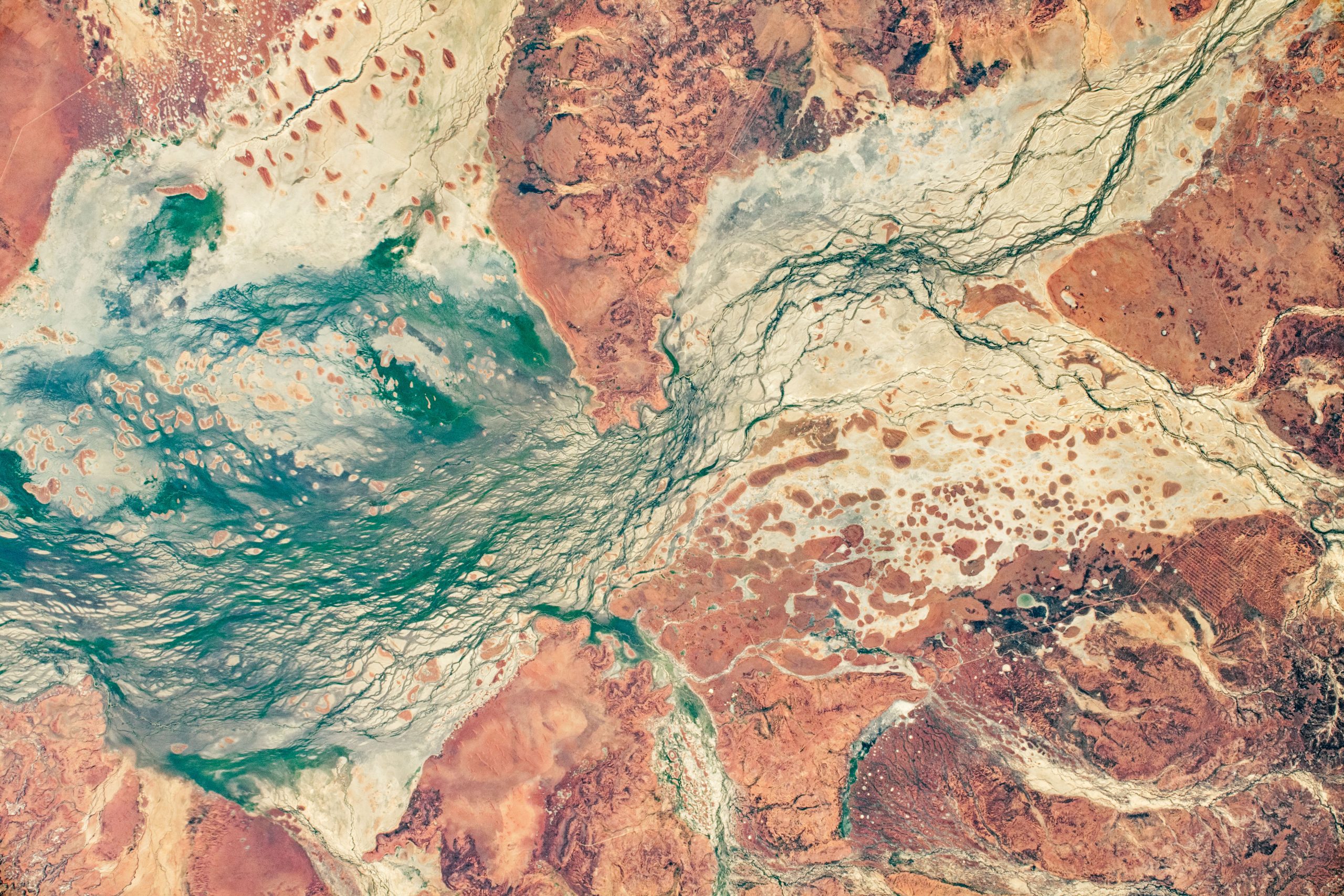 The image was captured by an astronaut onboard the International Space Station (ISS) on April 5, 2020.Queensland is a state situated in northeastern Australia, and is the second-largest and third-most populous Australian state. It is a federated state and a parliamentary constitutional monarchy, and is bordered by the Northern Territory, South Australia and New South Wales to the west, south-west and south respectively. The Cooper Creek floodplain in southwest Queensland