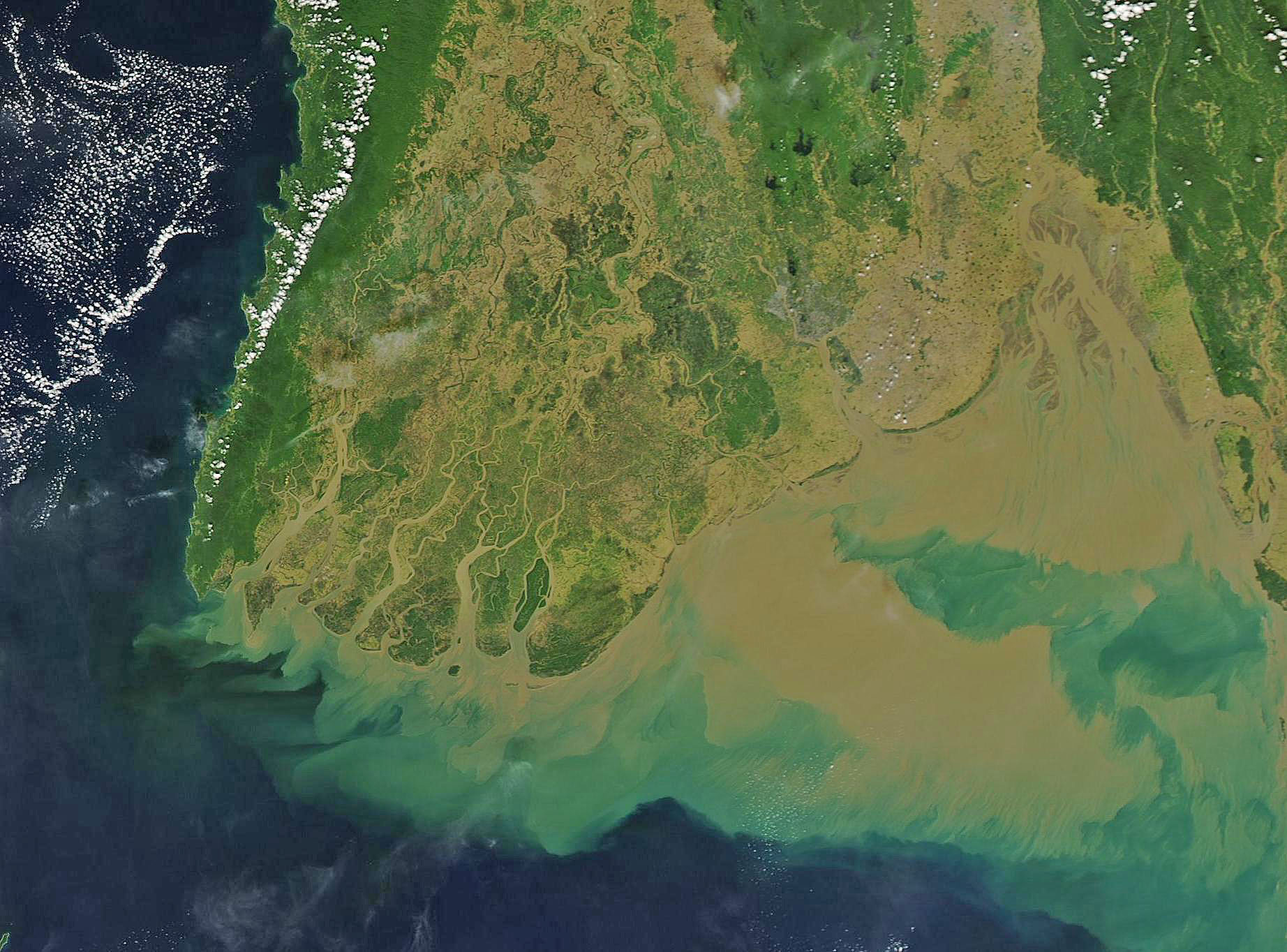 In Burma lies The Irrawaddy Delta. It fans out from the limit of tidal influence at Myan Aung to the Bay of Bengal and Andaman Sea, 290 km to the south at the mouth of the Ayeyarwady River.