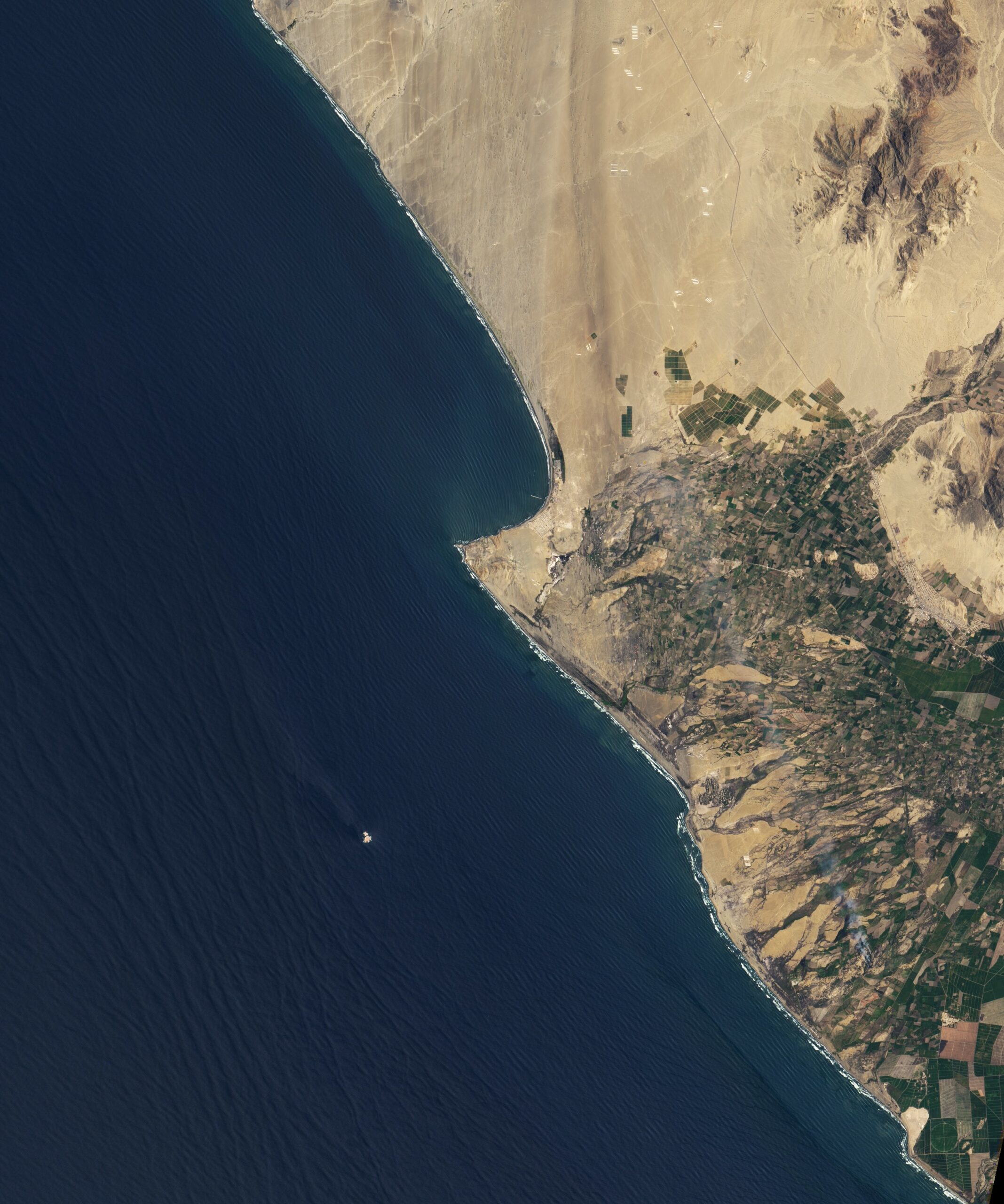 Today’s Image of the Day from NASA Earth Observatory features the Pacific coast of northern Peru, which is home to sone of the world’s longest waves. These waves along the fishing town of Puerto Malabrigo (Chicama) are legendary among surfers.