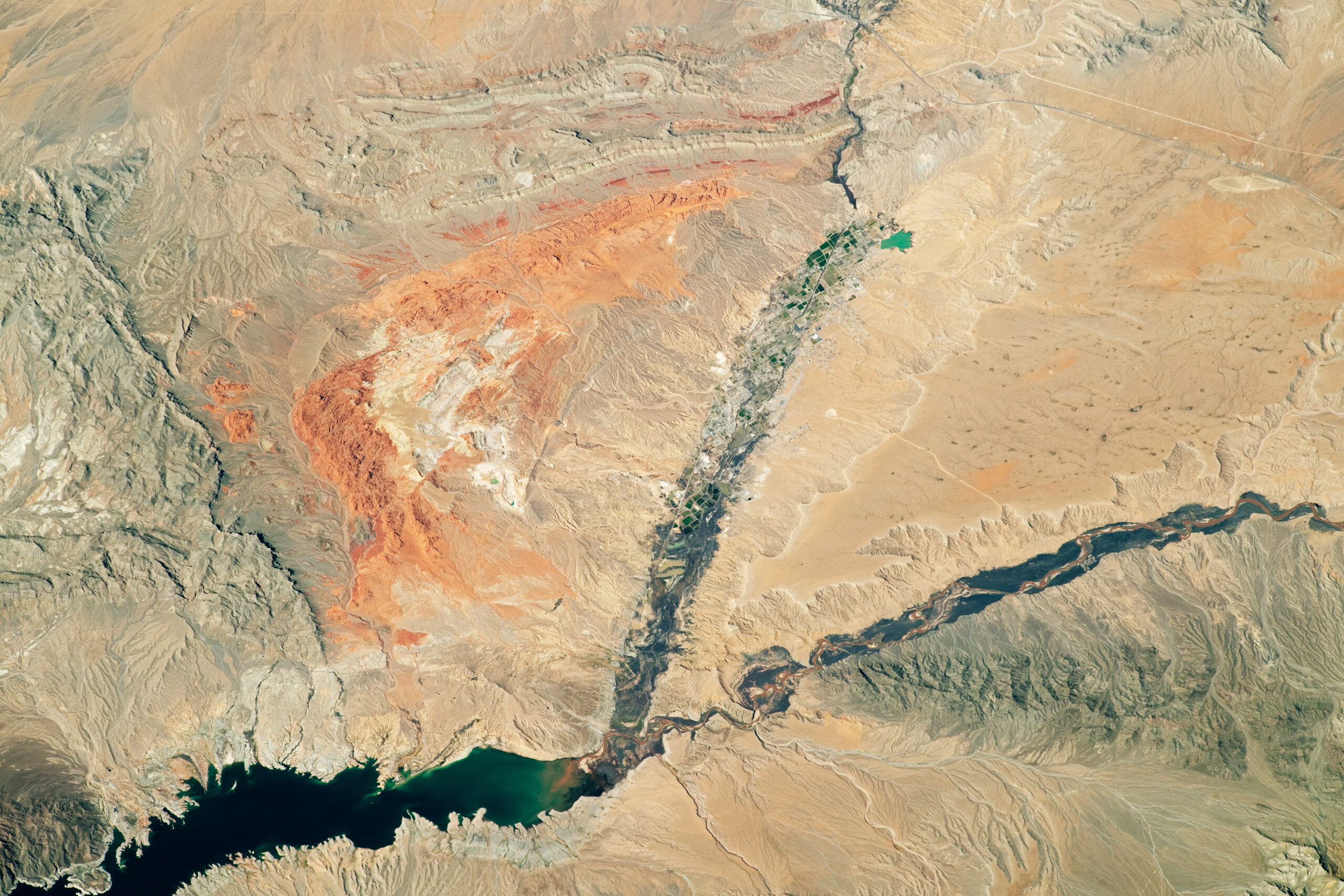 The southern part of the Moapa River Indian Reservation is also visible in this photograph, which was captured by an astronaut onboard the International Space Station.