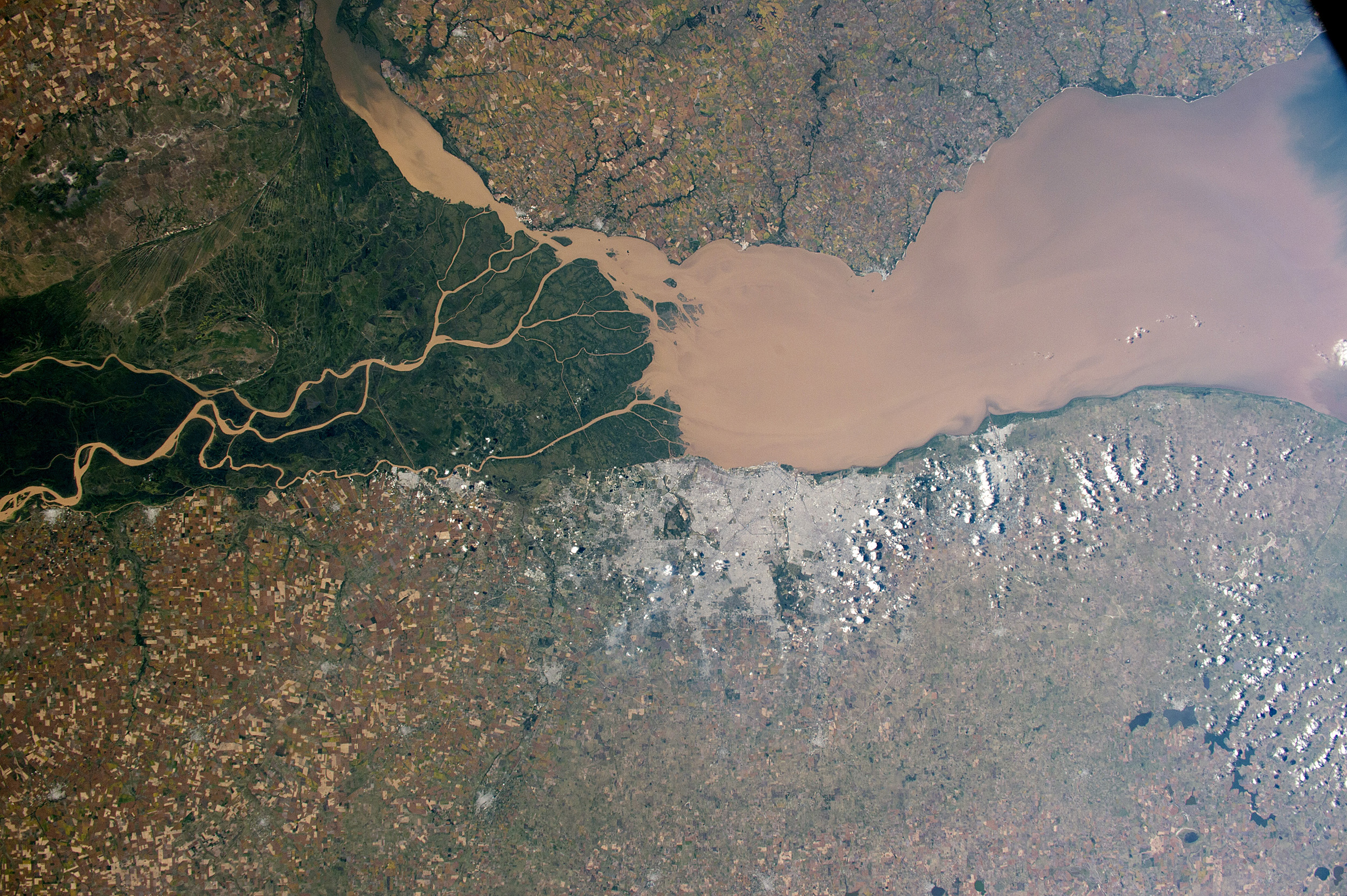 The Paraná River: Good Air And Brown Water. This photograph was taken as astronauts on the International Space Station flew over the delta and green swamps of the Paraná River on the Atlantic coast of Argentina. The Paraná, South America’s second largest river after the Amazon, pours muddy water into a wide estuary known as the Plata River.