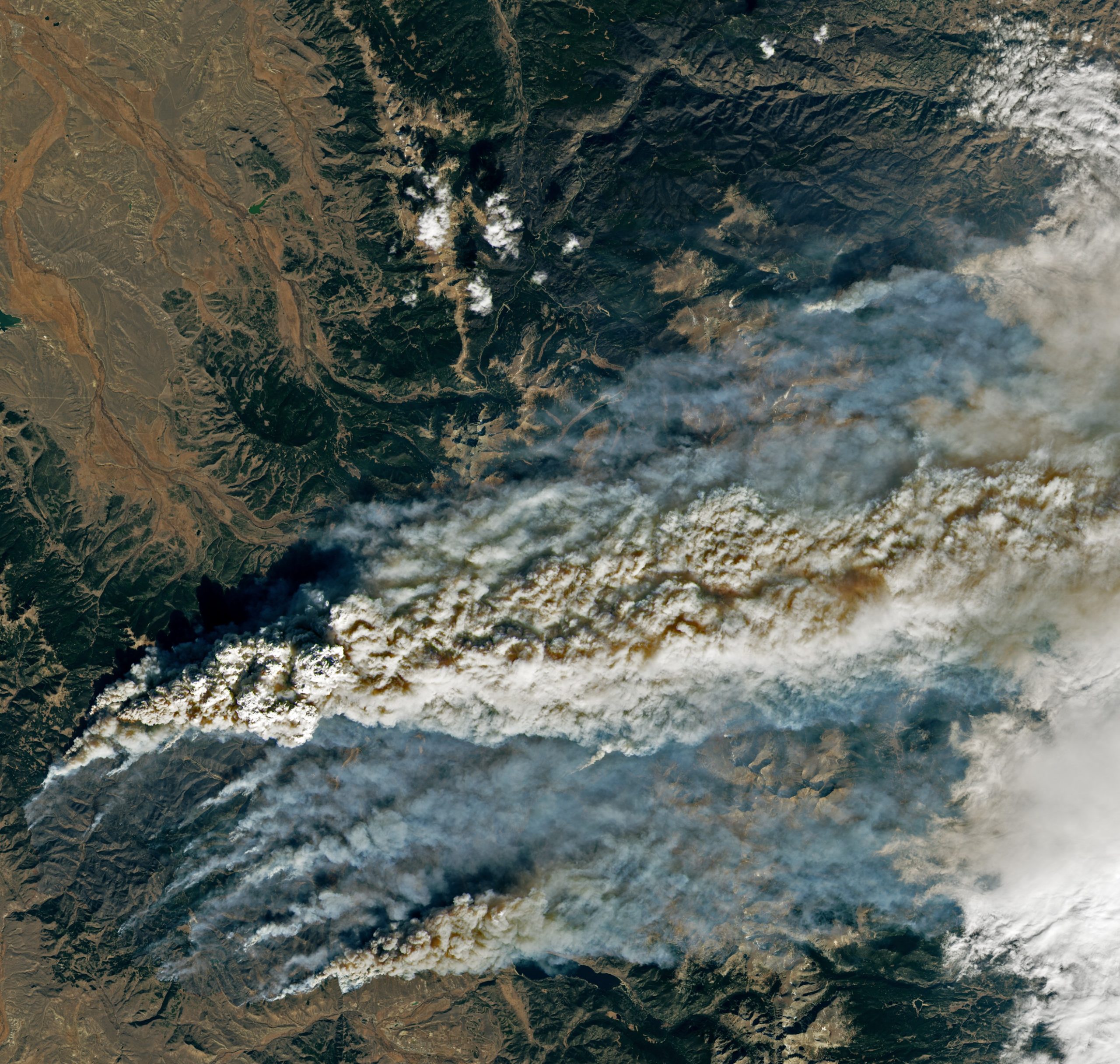 In the Rocky Mountains, the fire has burned quickly through lodgepole pine forests, which had already been weakened by drought and an infestation of bark beetles, according to NASA.