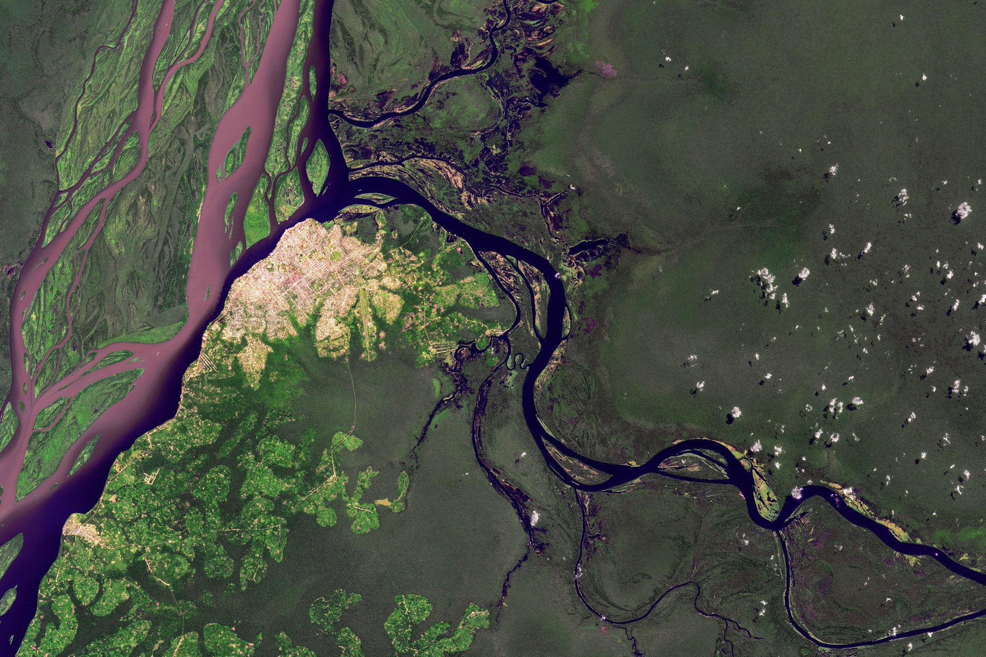 “If the appearance of the muddy Amazon River evokes a coffee cut with cream, the Ruki River, coursing gently through the Congo Basin, is like a dark tea,” said NASA.