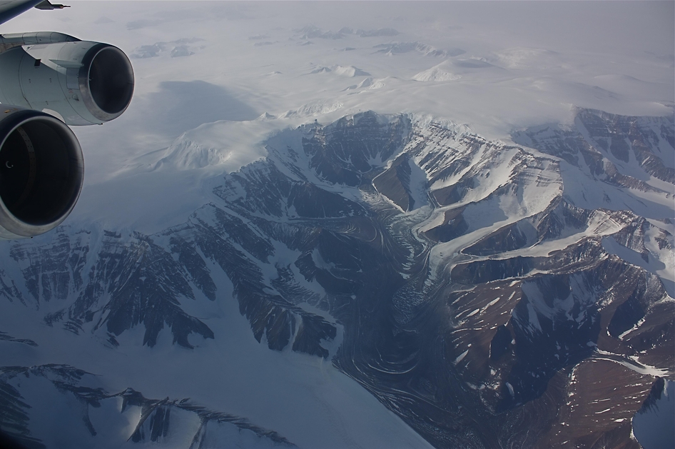 A view of a Transantarctic mountain glacier from the DC-8. Credit: NASA/Goddard/Sarah DeWitt
