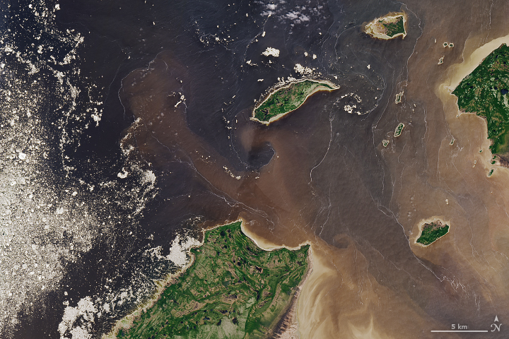 From space, the view of fresh river water colliding with the ocean looks incredible. It is colored by sediment and dissolved organic matter from the runoff of nearby peatlands.