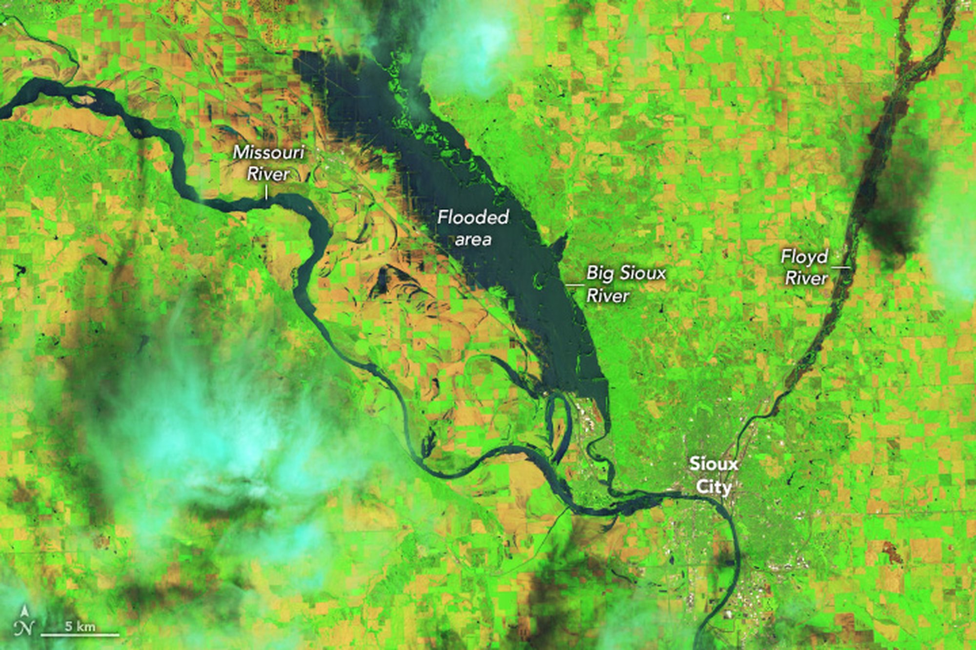 In late June, more than a foot of rain fell on parts of South Dakota and Iowa in the Midwest, causing rivers to overflow and resulting in significant destruction. The overflowing rivers demolished homes and bridges and inundated farmlands.