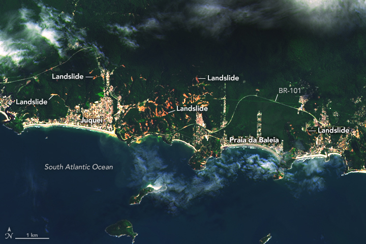 Today’s Image of the Day from NASA Earth Observatory features the coast of São Paulo in southeast Brazil, where heavy rainfall and flooding triggered deadly landslides.