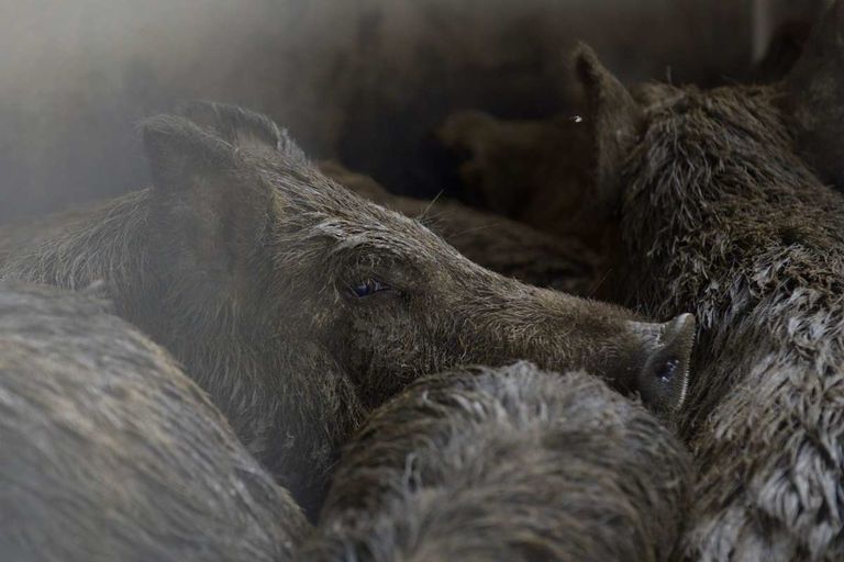Feral hogs have a combo of wild and domestic traits, which include their ability to withstand cold temperatures (they have a prickly coat that’s layered over thick fur) and birth large litters. Photo Credit: Billy Calzada / San Antonio Express-News