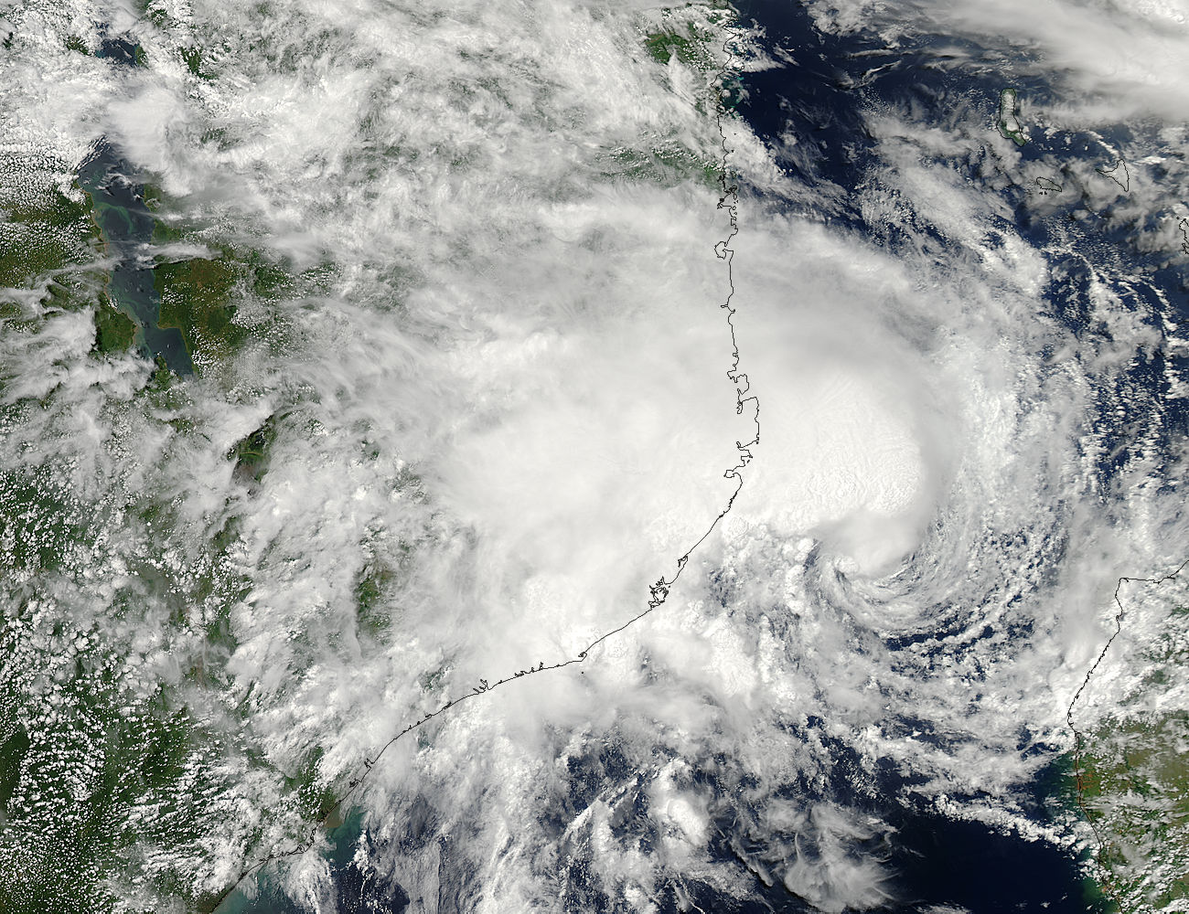 Tropical cyclone Boloetse in the Mozambique Channel, in between Madagascar and the east coast of Africa . In this image was acquired on February 3, 2006. It is forecast to strike Madagascar during the early morning hours of February 4, 2006.