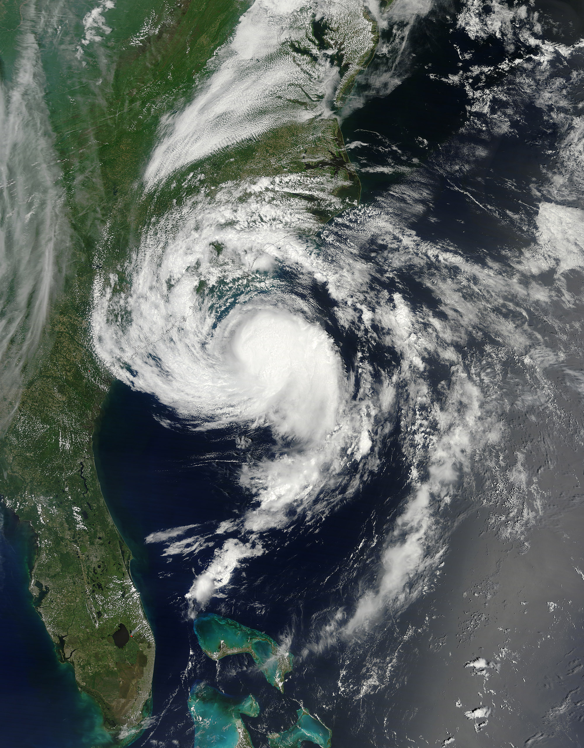Tropical Storm Ana On May 10, 2015, Tropical Storm Ana made landfall in South Carolina. One day earlier, on the morning of May 9, the Moderate Resolution Imaging Spectroradiometer (MODIS) on NASA’s Terra satellite acquired this natural-color image of the storm off the coast of the Carolinas.