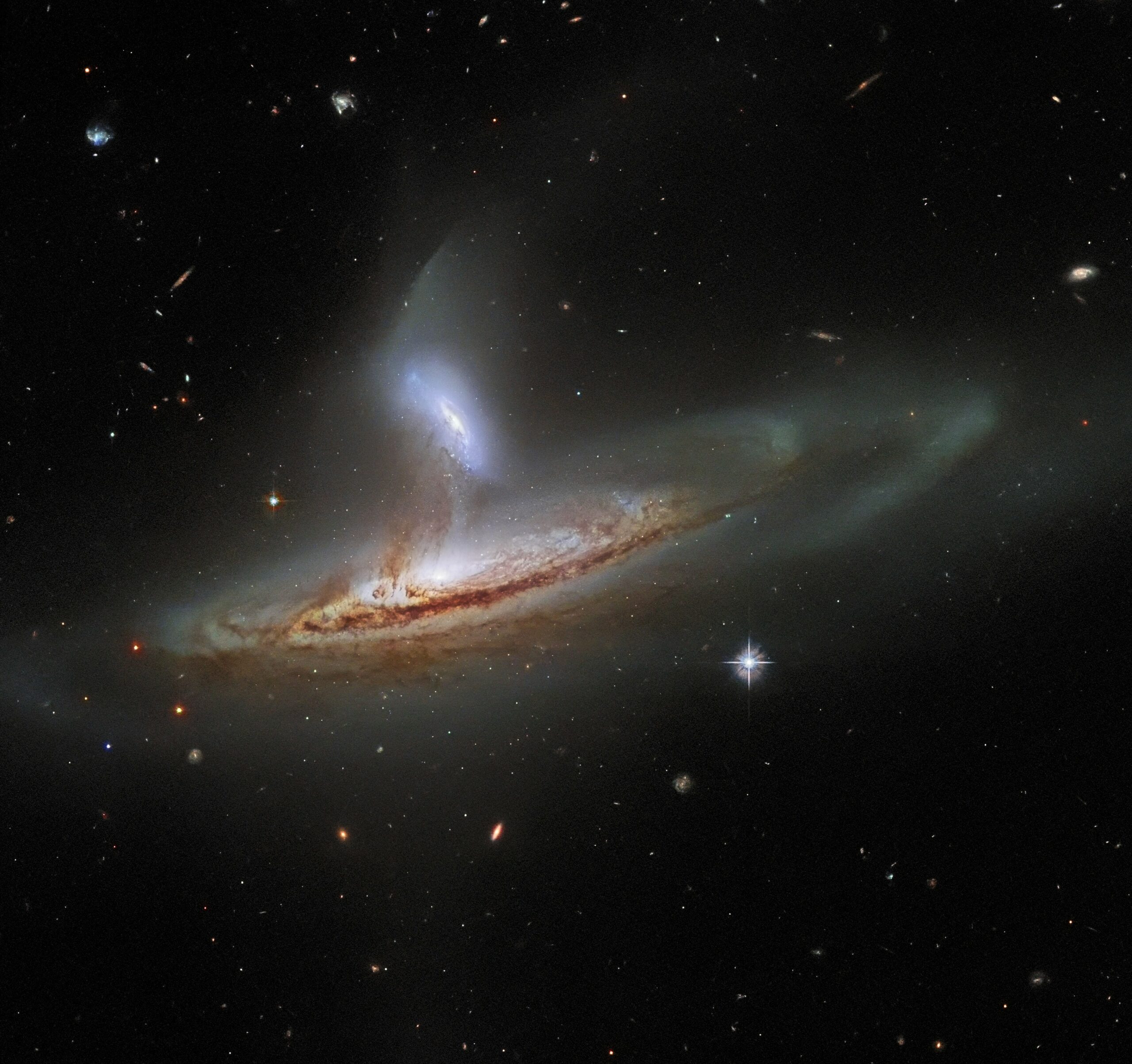 “Galaxies can merge, collide, or brush past one another – each of which has a significant impact on their shapes and structures. As common as these interactions are thought to be in the Universe, it is rare to capture an image of two galaxies interacting in such a visibly dynamic way.”