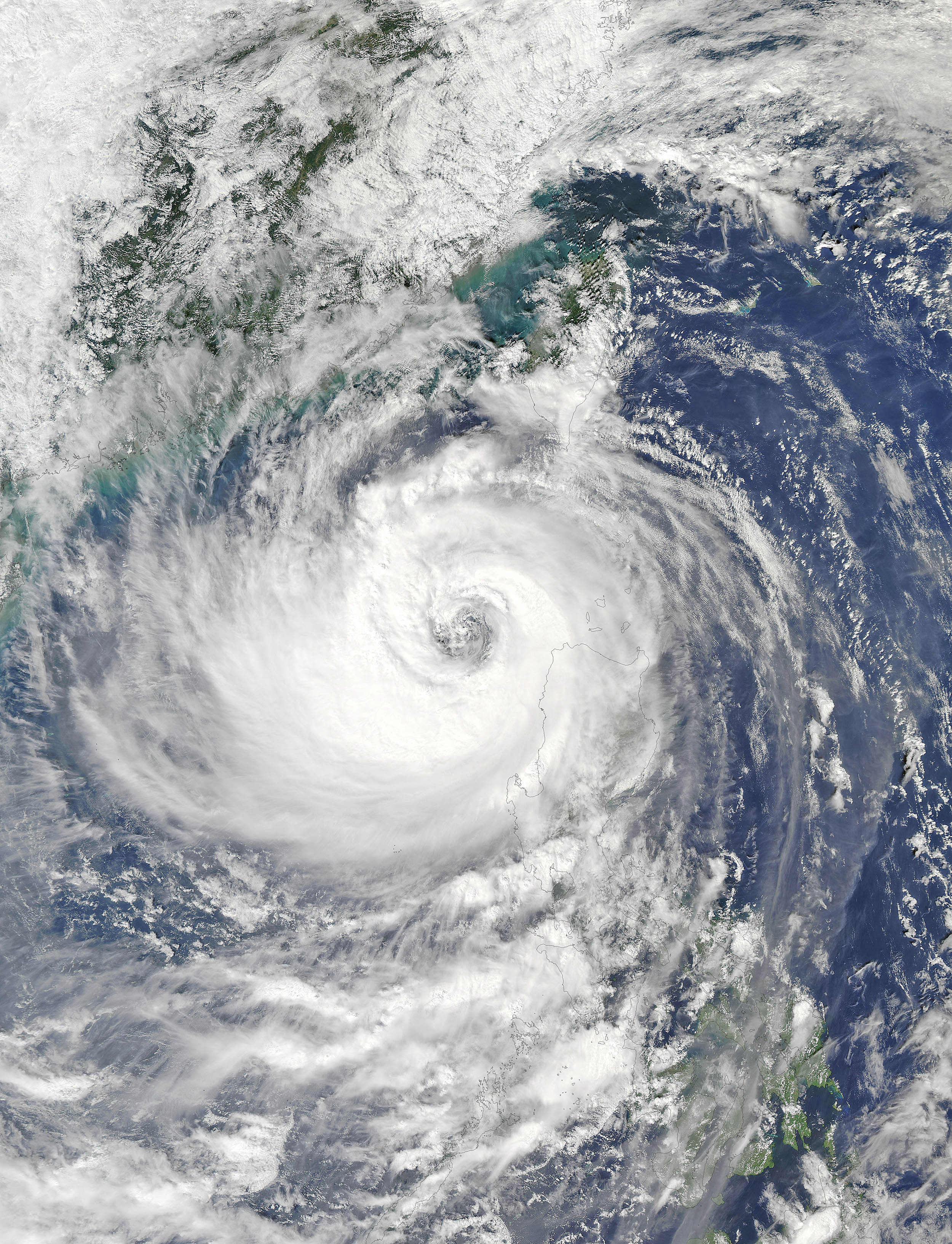 On October 20, 2016, the Moderate Resolution Imaging Spectroradiometer (MODIS) flying aboard NASA’s Aqua satellite captured a true-color image of Typhoon Haima (25W) as it moved over the Philippines. Haima had a very large eye and heavy bands of convection wrapping into the center. Bands of cloud, which carry heavy rain and thunderstorms, reached over much of the northern Philippines.